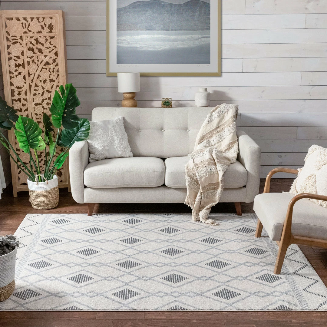 Well Woven Matilda Cream/Grey Modern Tribal Diamond Rug Vintage