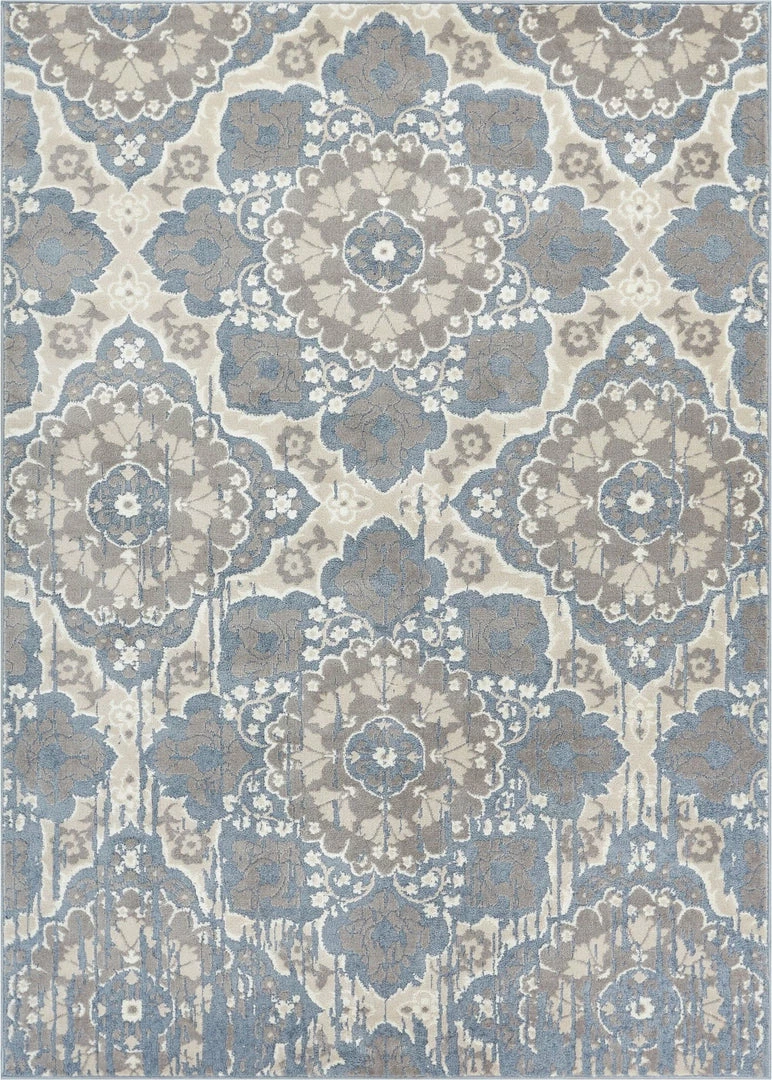 The Pearl collection weaves classic designs in two distinctly different yarns for a unique look and feel. Silky soft microfiber fills in portions of the pattern to create a two-tiered, high-low texture. The varied texture and shimmer of the yarns along with subdued colors and intentional pattern distressing give an acid wash effect and worn-in feel. The 0.4″ pile won’t shed and is resistant to staining and fading. The rug’s 100% jute backing is safe for wood floors and all four sides of the rug are serged for improved durability.