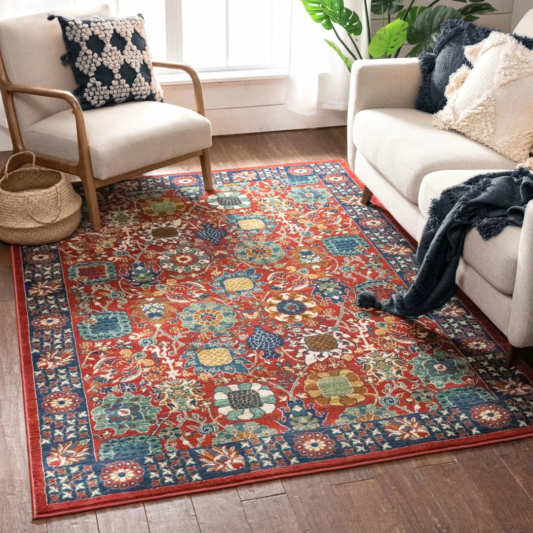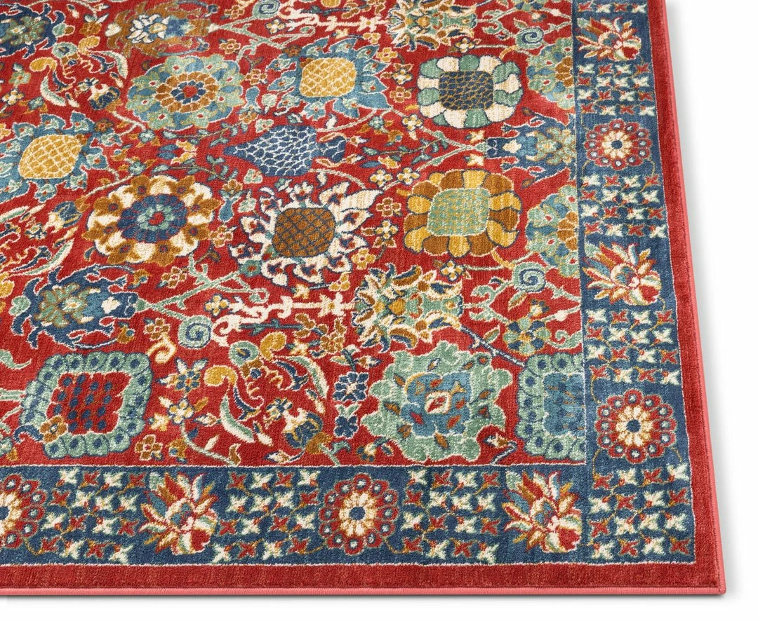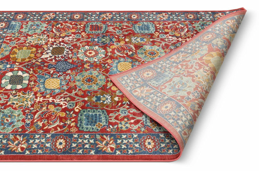 The Tulsa collection draws upon a curated array of traditional Persian, Southwestern, and Moroccan designs. A warm palette of red, blue, and green jewel tones is accented by neutral colors of ivory and beige for a rug that’s easy to match with any decor.
