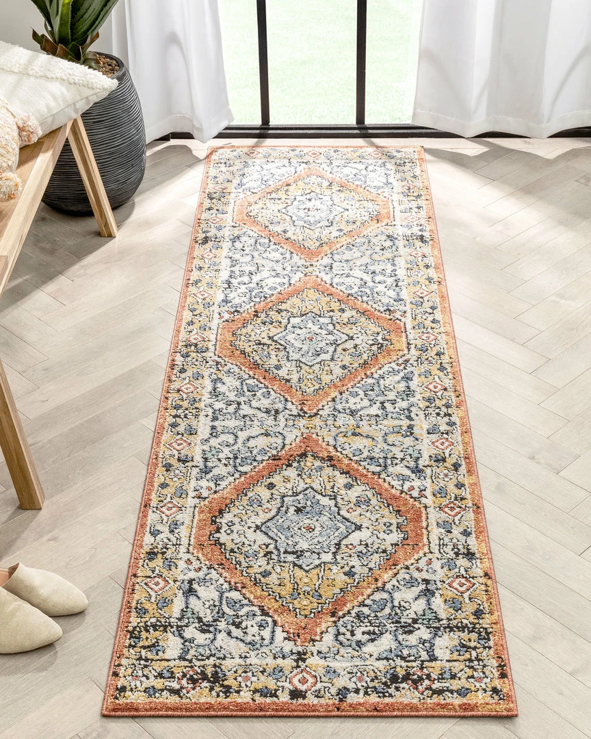 With classic patterns artfully distressed and detailed geometric designs that can remake a space, the Envie collection is at home with just about any modern decor. The soft, bright pile is stain-resistant and the natural jute backing is safe for all flooring.