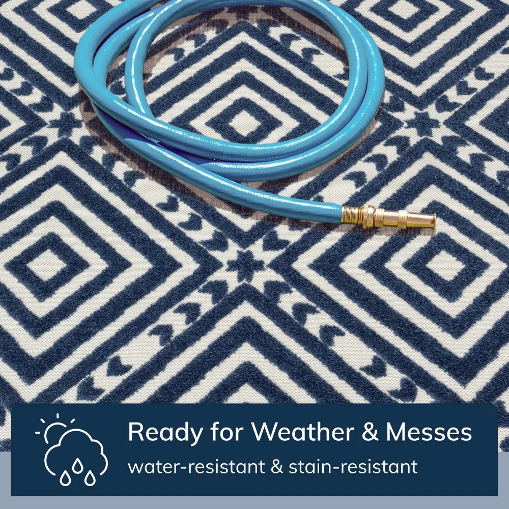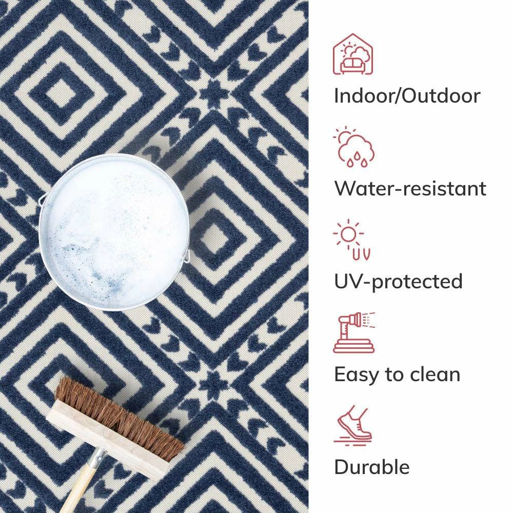 - Features high resistance to tough outdoor conditions with the aesthetics of an indoor rug