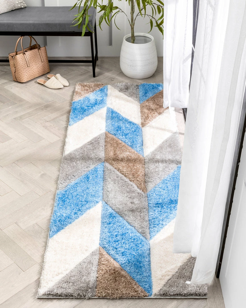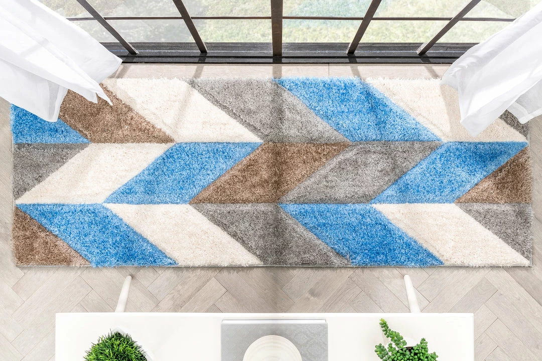 Well Woven Mika Retro Chevron 3D Textured Shag Grey Light Blue Rug