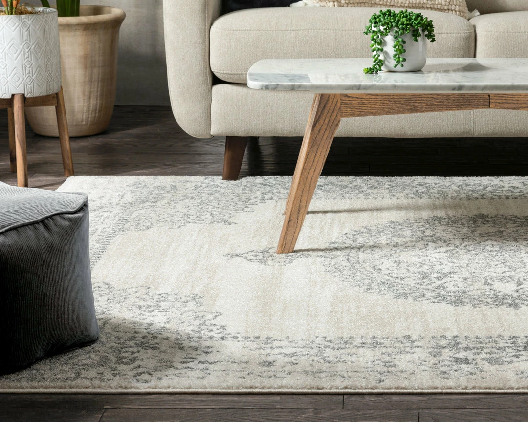 The Serenity Collection is an exciting array of trendy geometric patterns and distressed-effect traditional designs, woven in a combination of cool, neutral tones with pops of vibrant color. The extra dense, 0.35″ frieze yarn pile is low enough to fit under doors but maintains an exceptionally soft, plush feel. The yarn is stain resistant and doesn’t shed or fade over time. Durable and easy to clean, these are perfect for long use in high traffic areas.