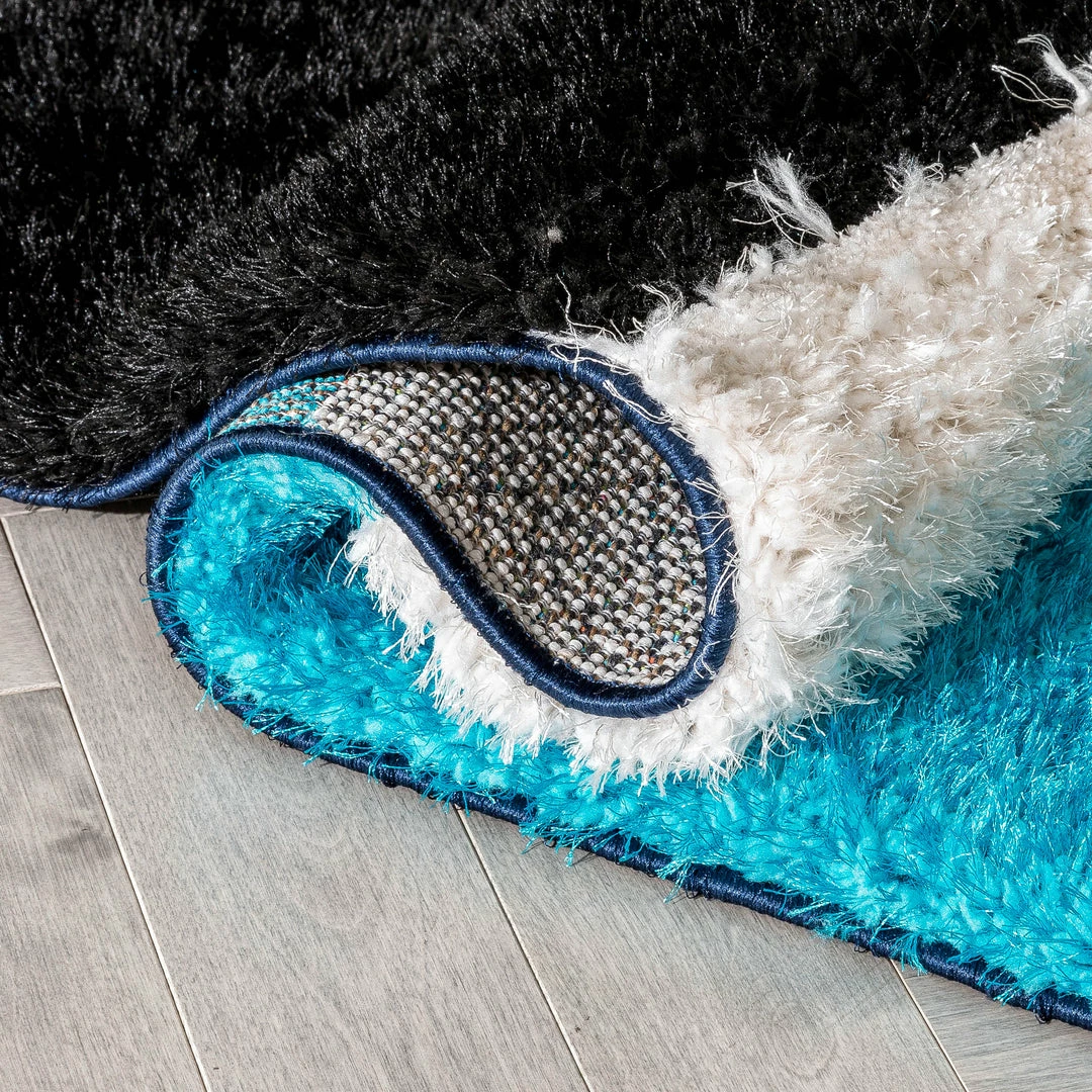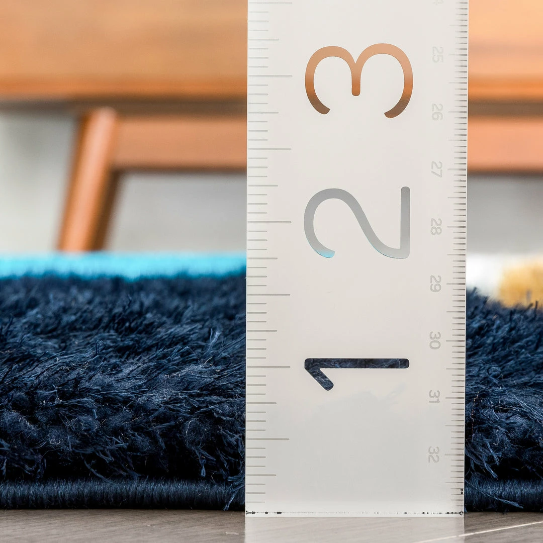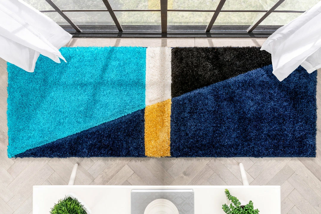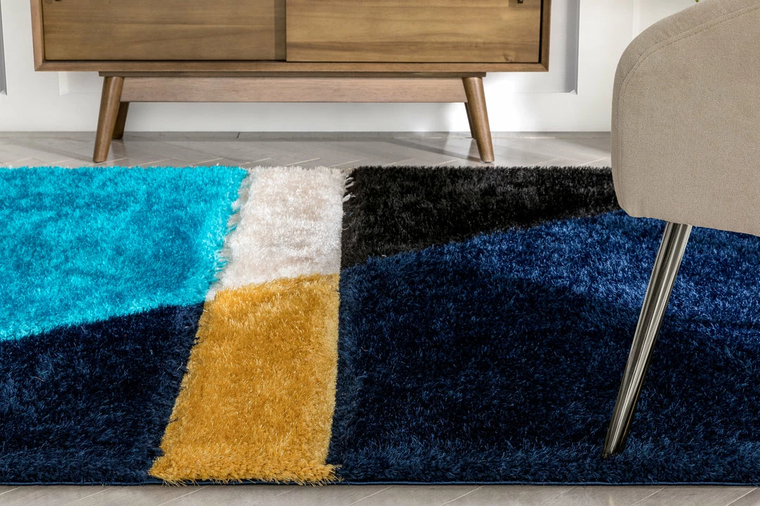 Well Woven Mori Modern Abstract Geometric 3D Textured Shag Blue Yellow Rug