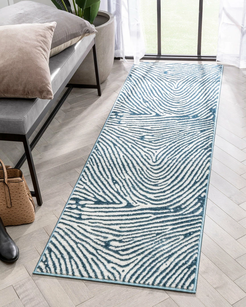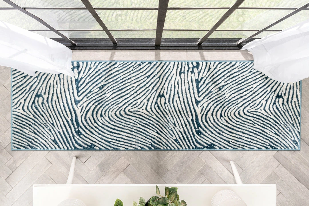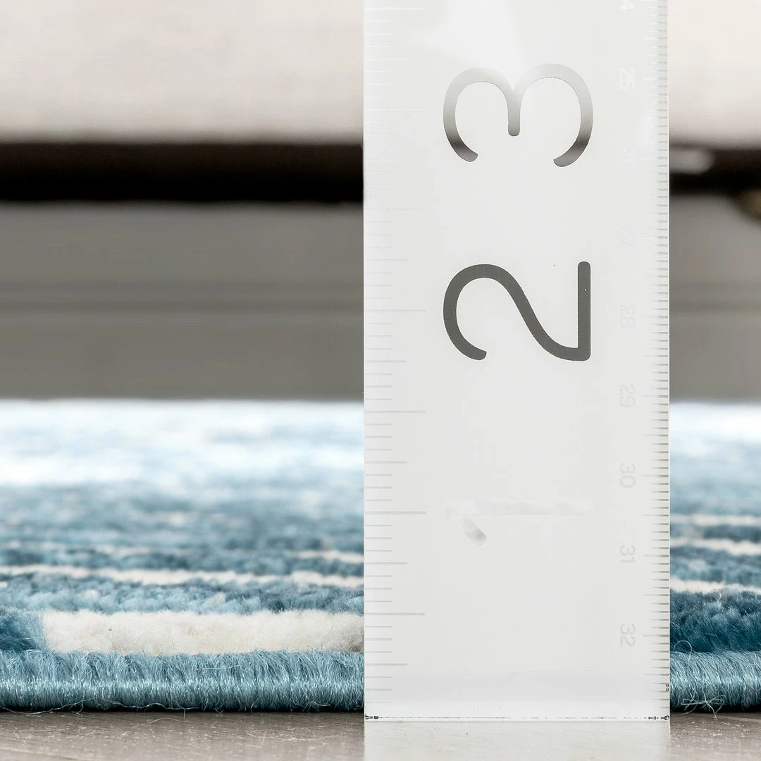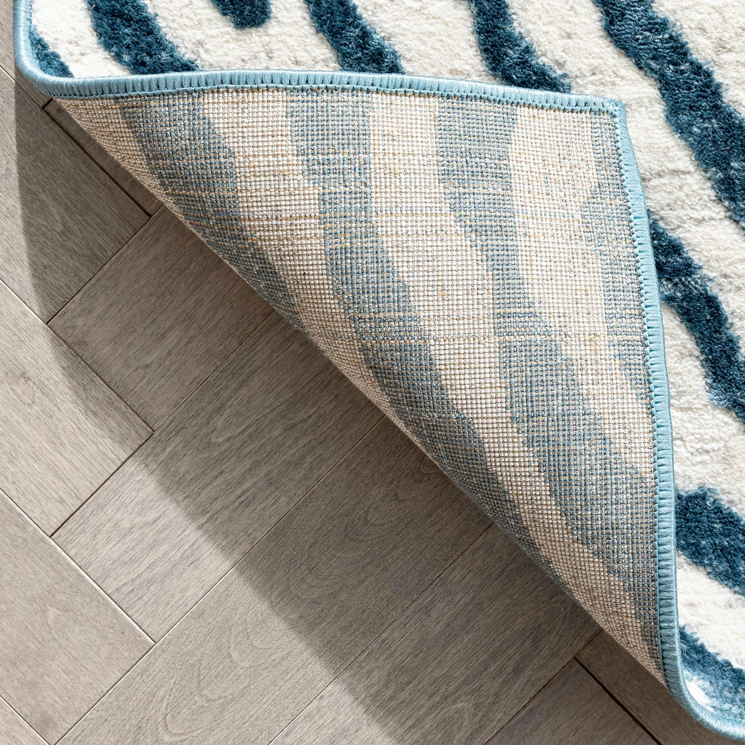 Well Woven Moroccan Asiya Modern Geometric Blue High-Low Rug