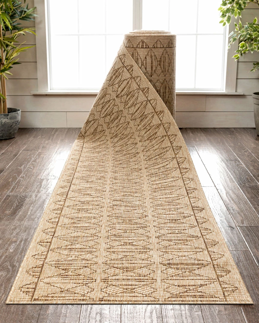 Well Woven Moroccan Vidar Custom Size Indoor/Outdoor Runner Trellis Diamond Pattern Beige 31 Inch Width X Choose Your Length Hallway Flat-Weave Runner Rug