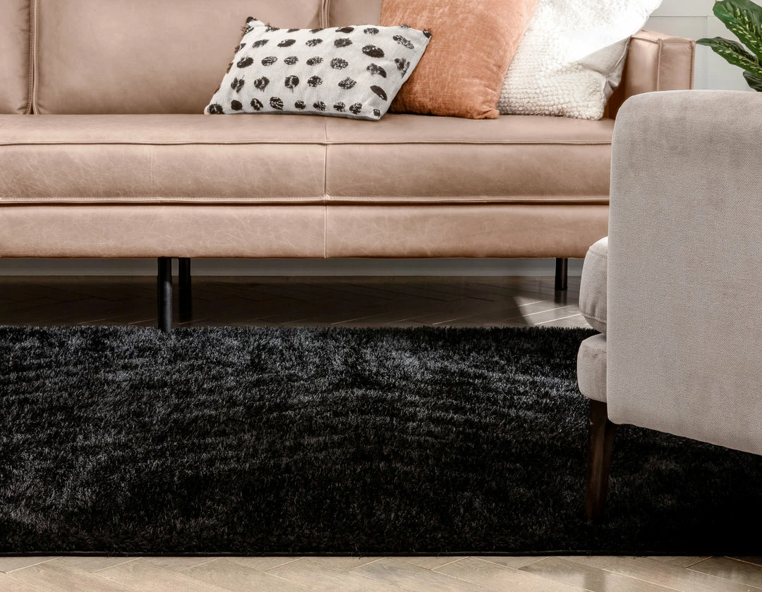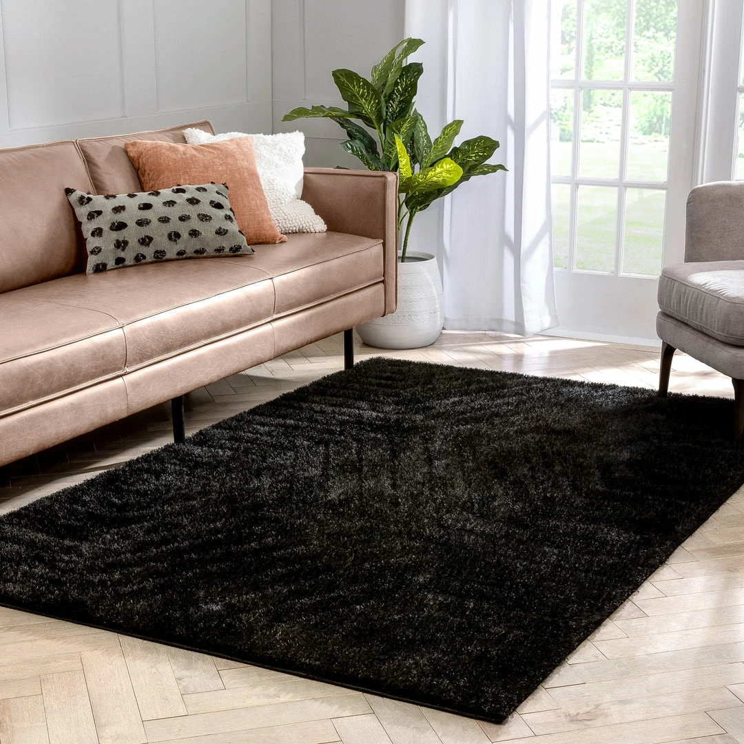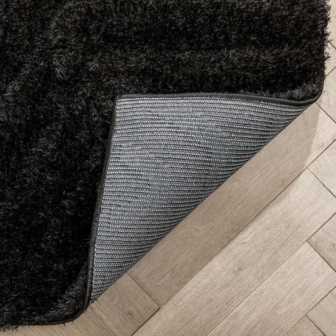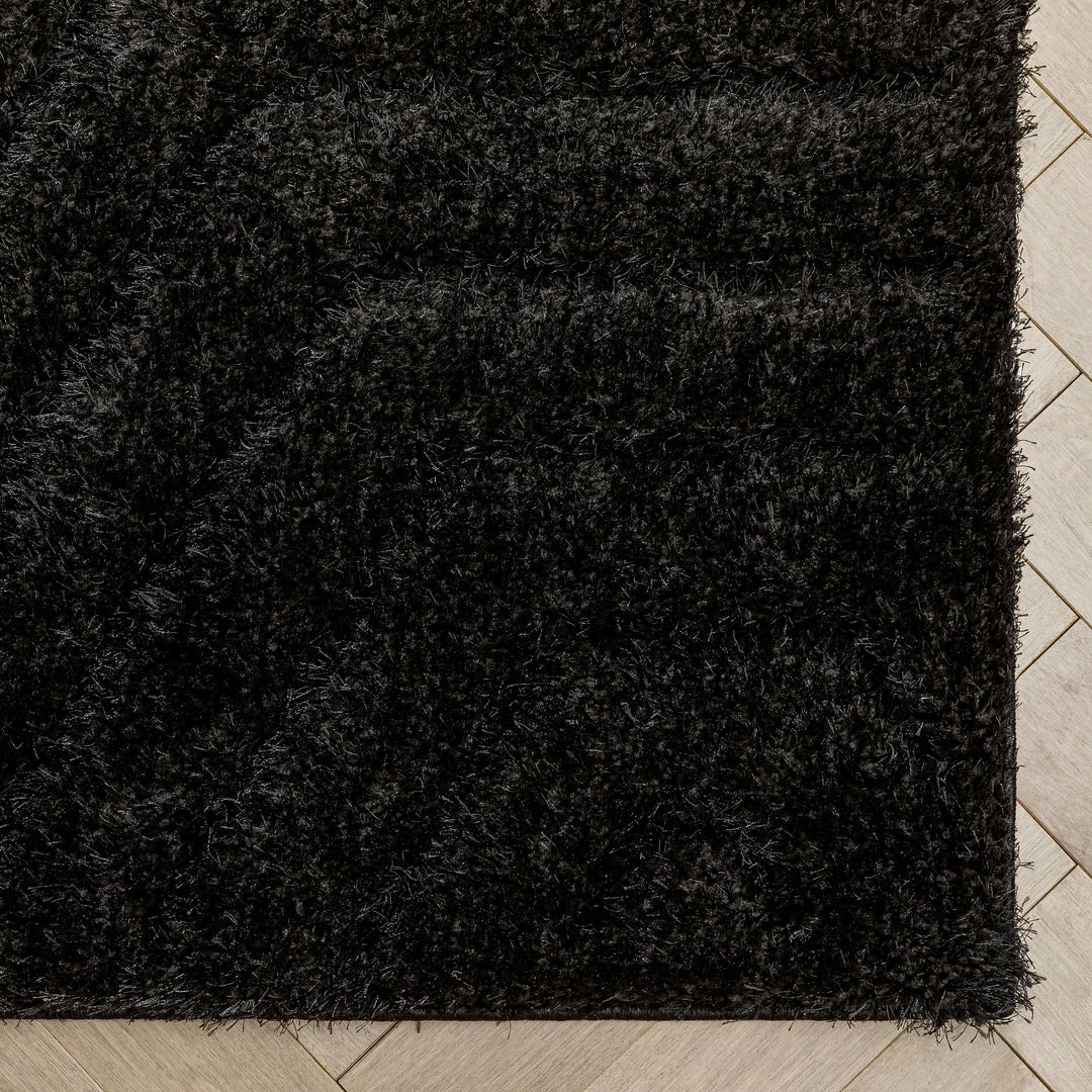 Well Woven Murray Solid Plain Shag Black 3D Textured Rug