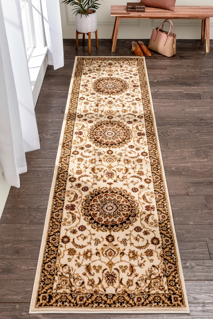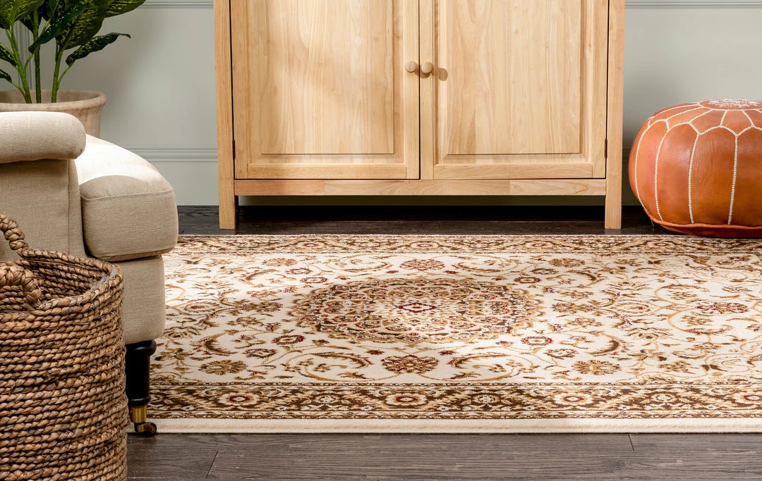 The Dulcet collection lets you express your style at a price you can afford. With patterns ranging from modern to traditional, in warm red and green jewel tones and neutral tones of ivory and beige, these rugs can match just about anything. The heat set polypropylene fiber gives a 0.4″ pile that is stain resistant and doesn’t shed or fade over time. The 100% jute backing is safe for wood floors and all four sides of the rug are serged for improved durability.