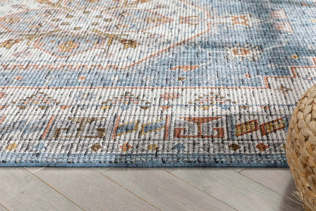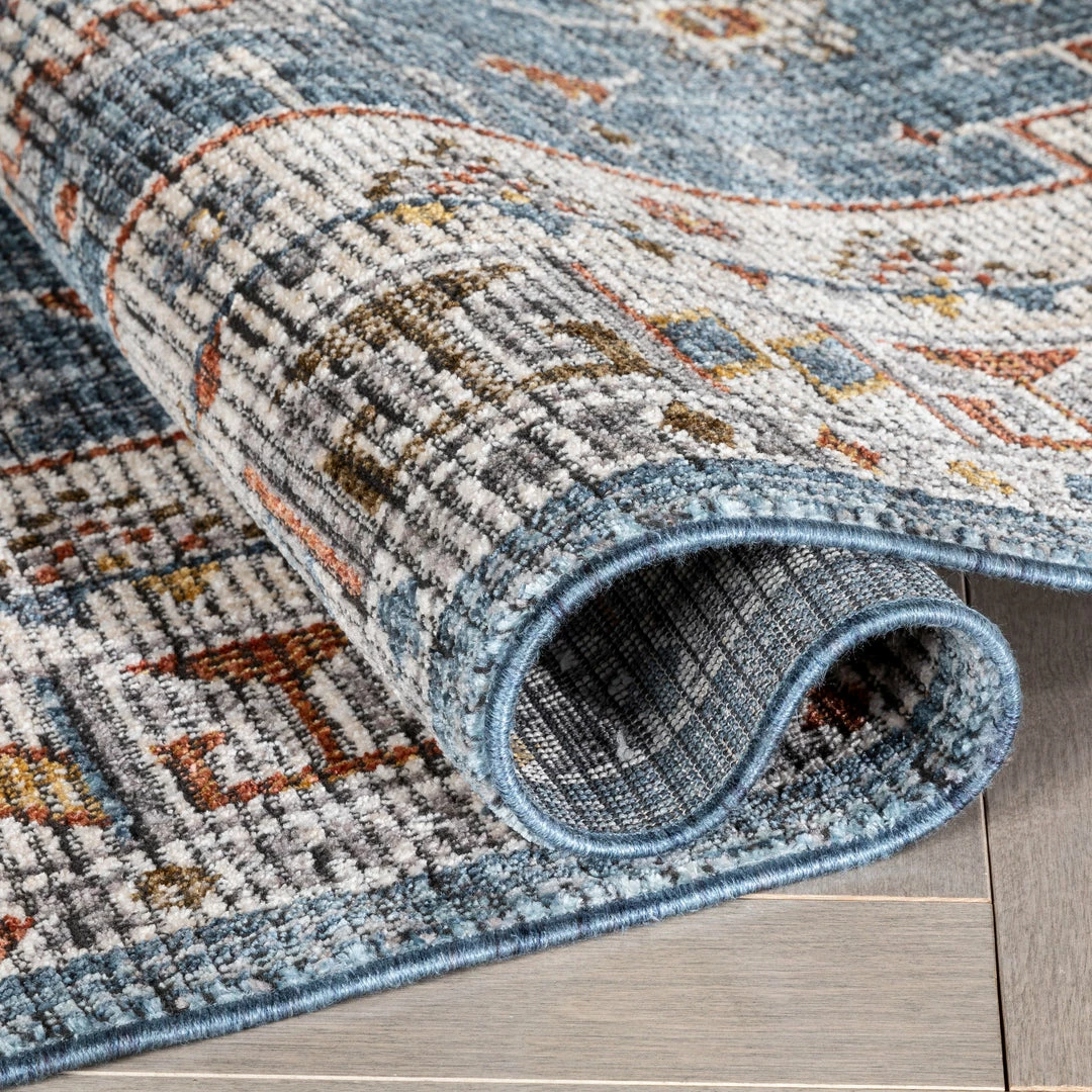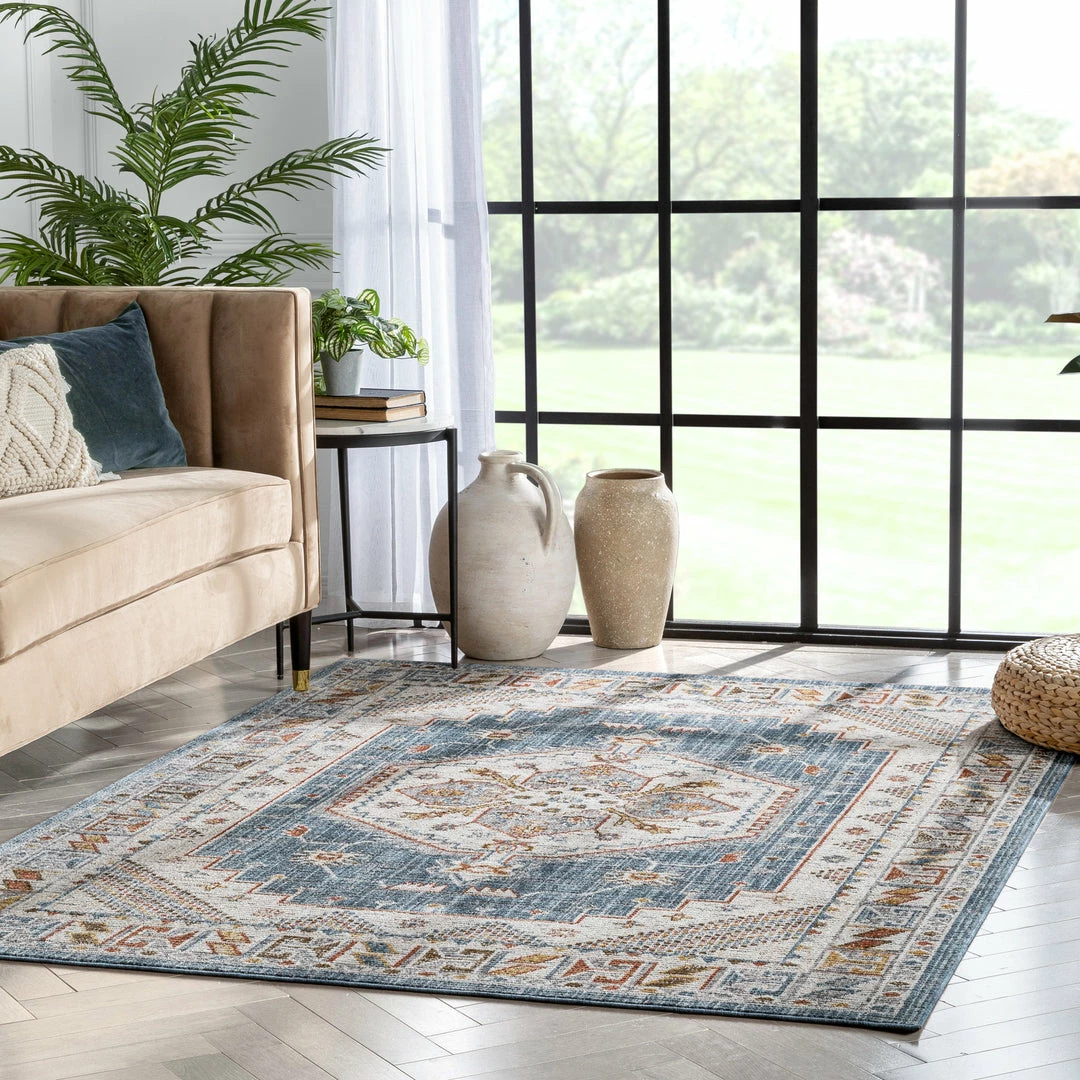 Well Woven Namib Vintage Medallion Oriental Blue Textured Rug