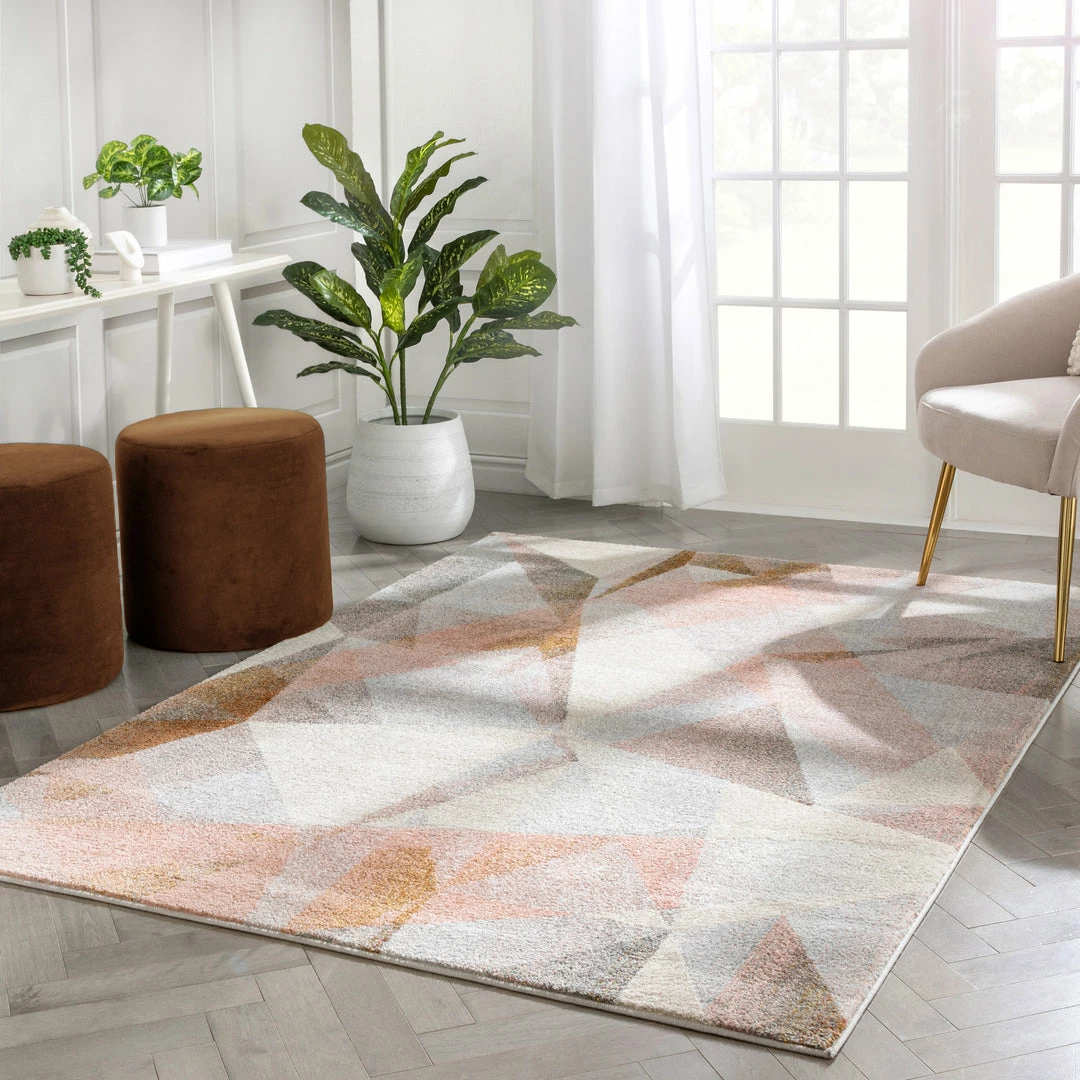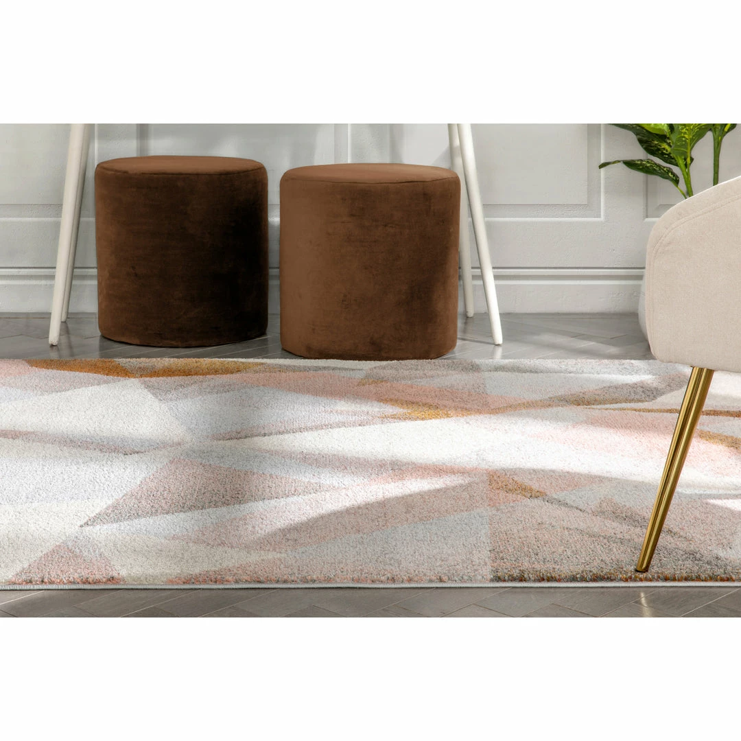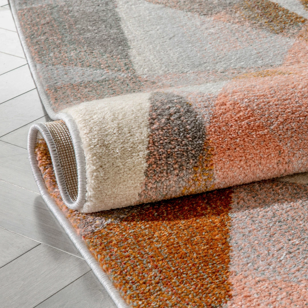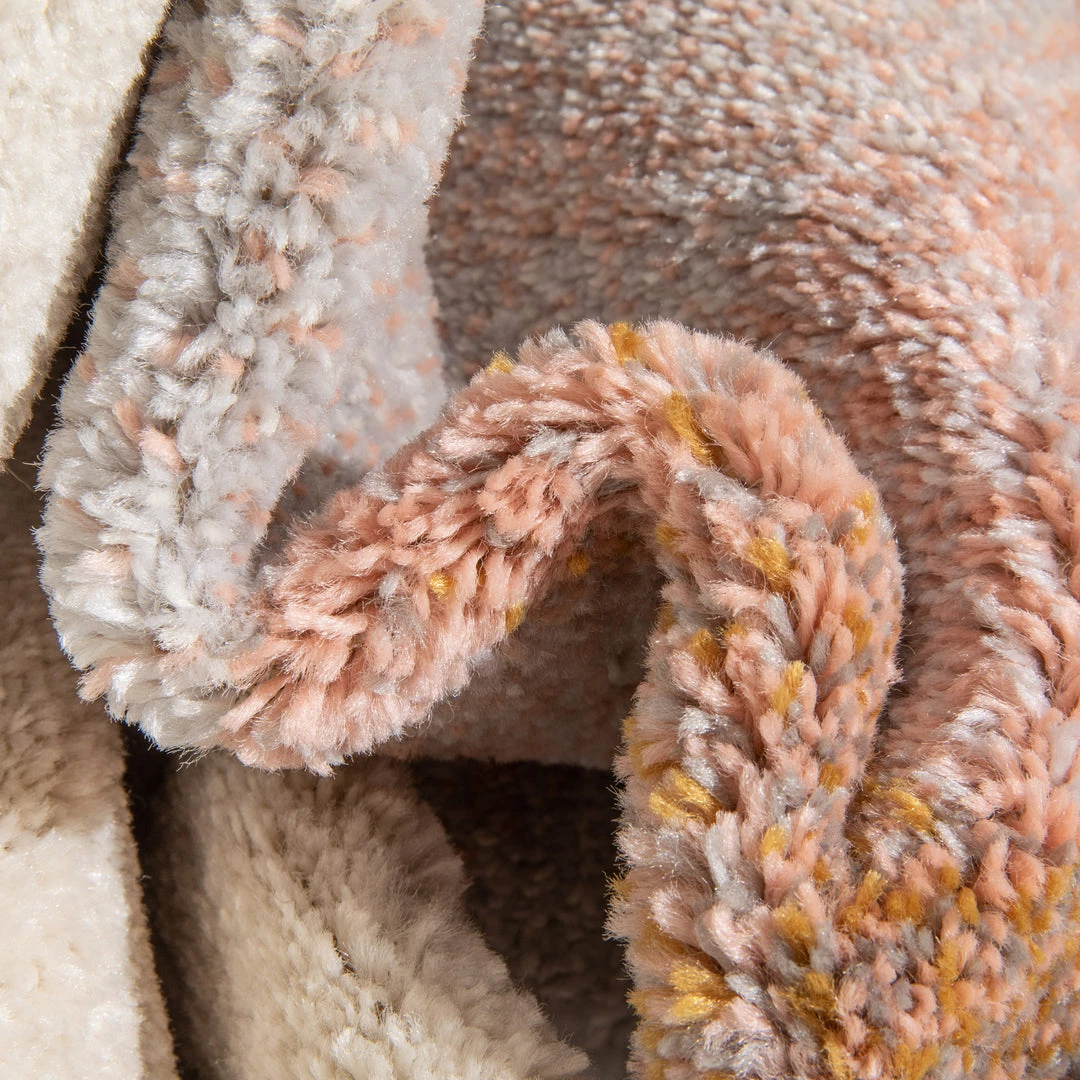 The Vettore collection is a harmonious interplay between contrasting tones with artisanal vibe. Modern and geometric styles are woven in colors ranging from hints of grey with pops of blue,yellow to delicate, dusty pink making each pattern a unique and opulent celebration of design. Fine, air twisted polypropylene construction gives a textured feel that is not only soft but stain resistant too.