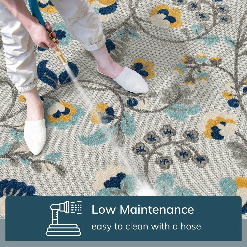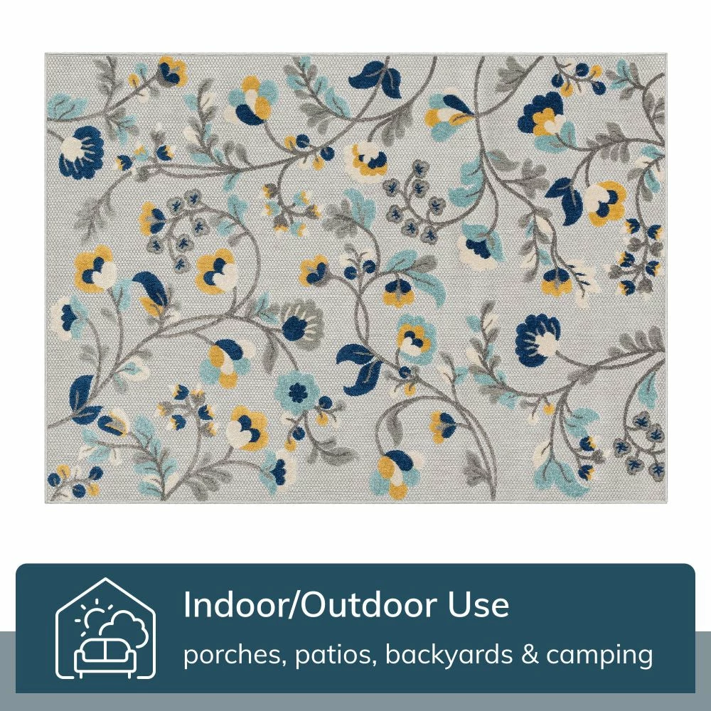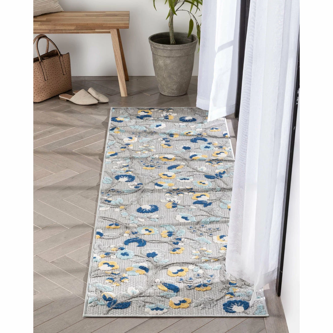 Well Woven Neveh Grey Modern Floral Indoor Outdoor Rug