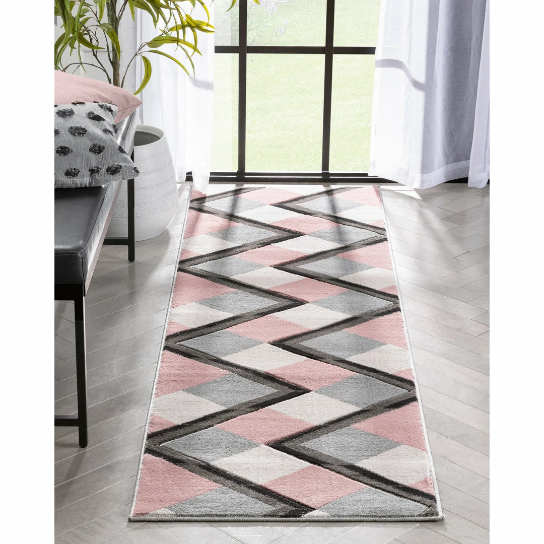 Bright, playful colors and dynamic geometric patterns give the Good Vibes Collection a sharp, modern feeling. The pattern accents are beveled for a unique 3D texture and the yarn is soft under hand and plush under foot.