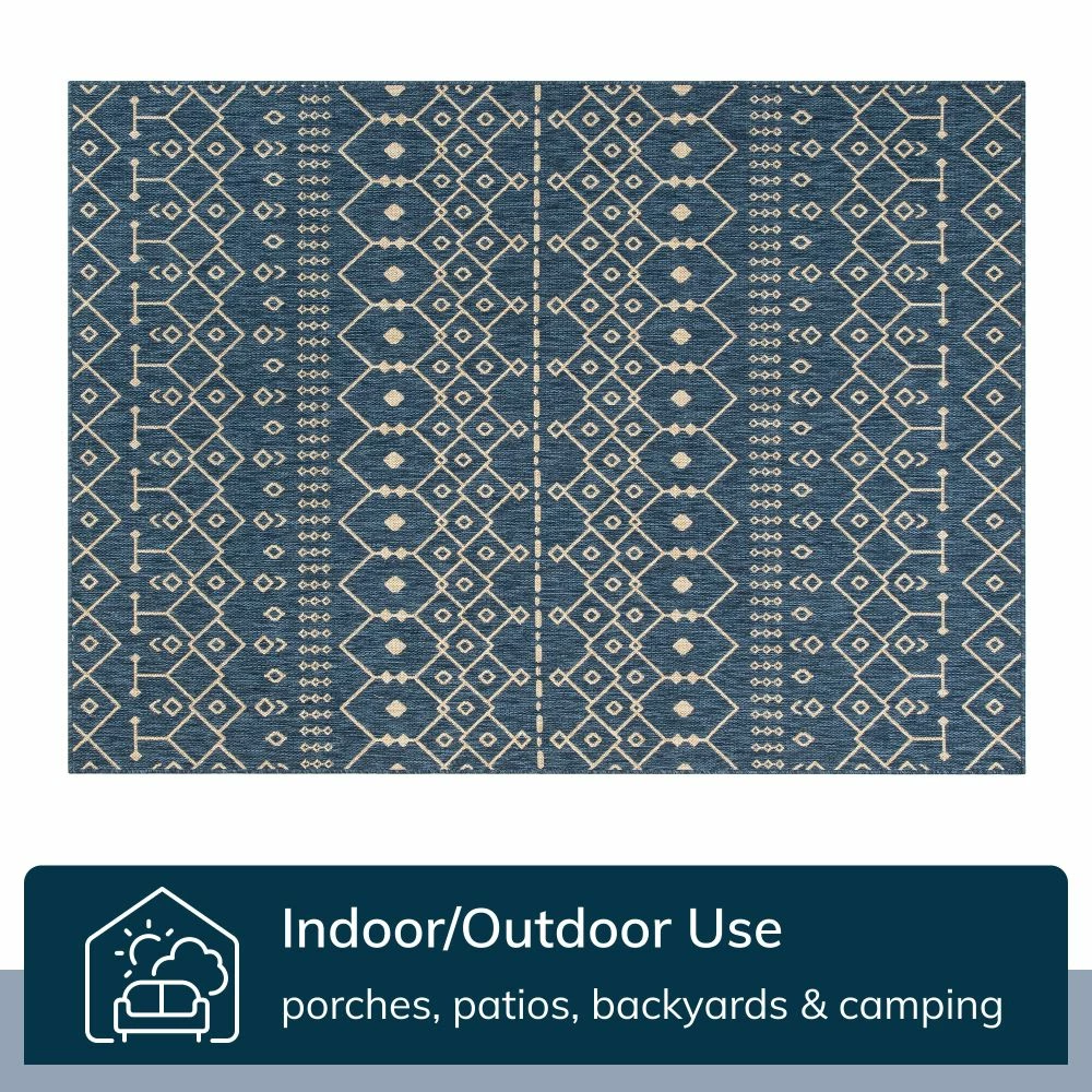 - Features high resistance to tough outdoor conditions with the aesthetics of an indoor rug.