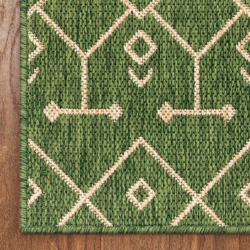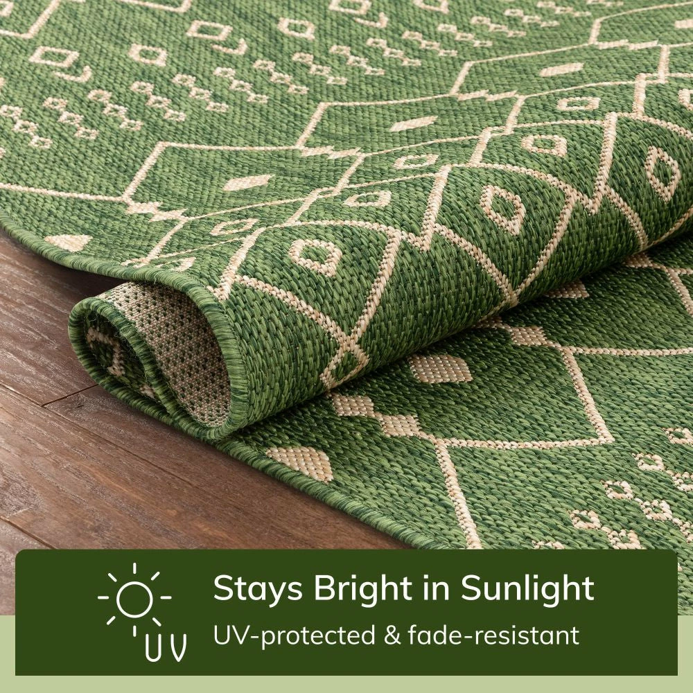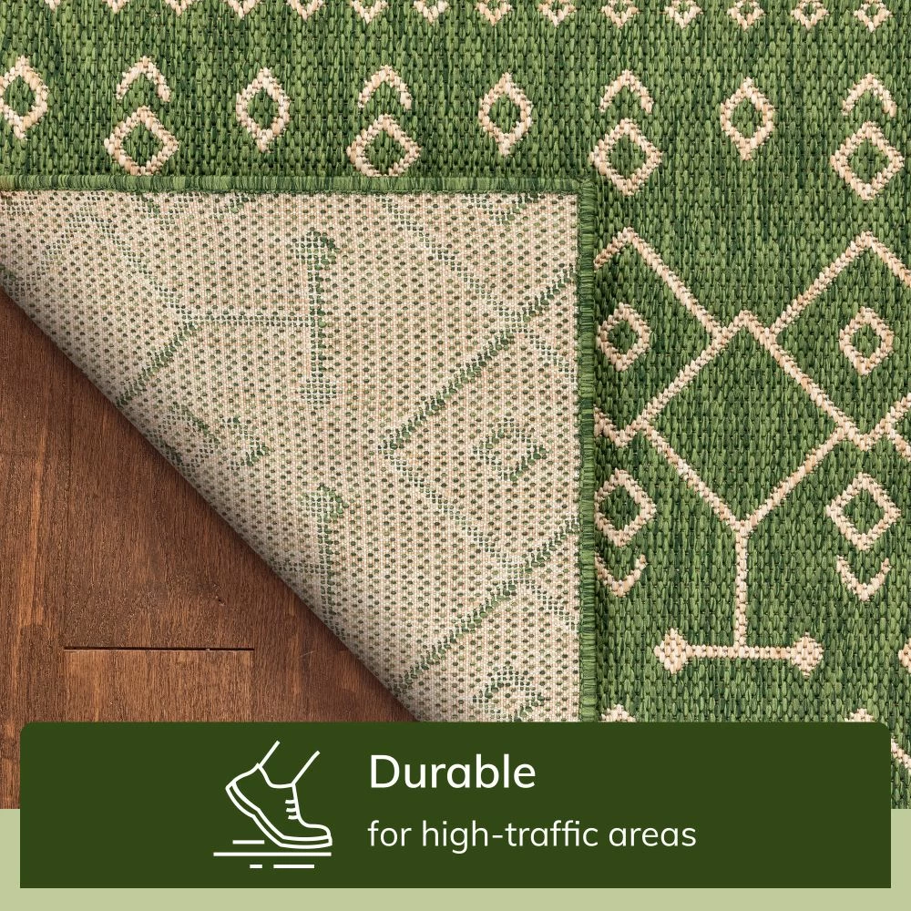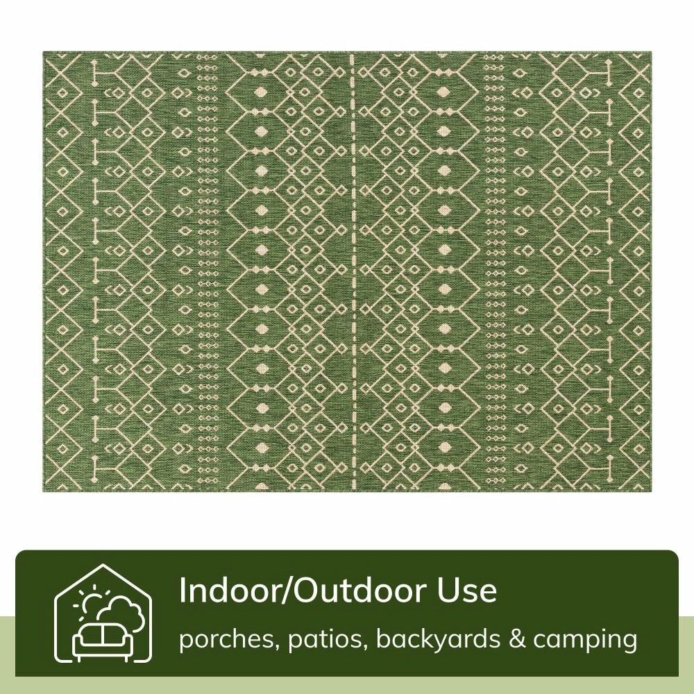 Well Woven Nord Moroccan Tribal Indoor Outdoor Green Flatweave Rug