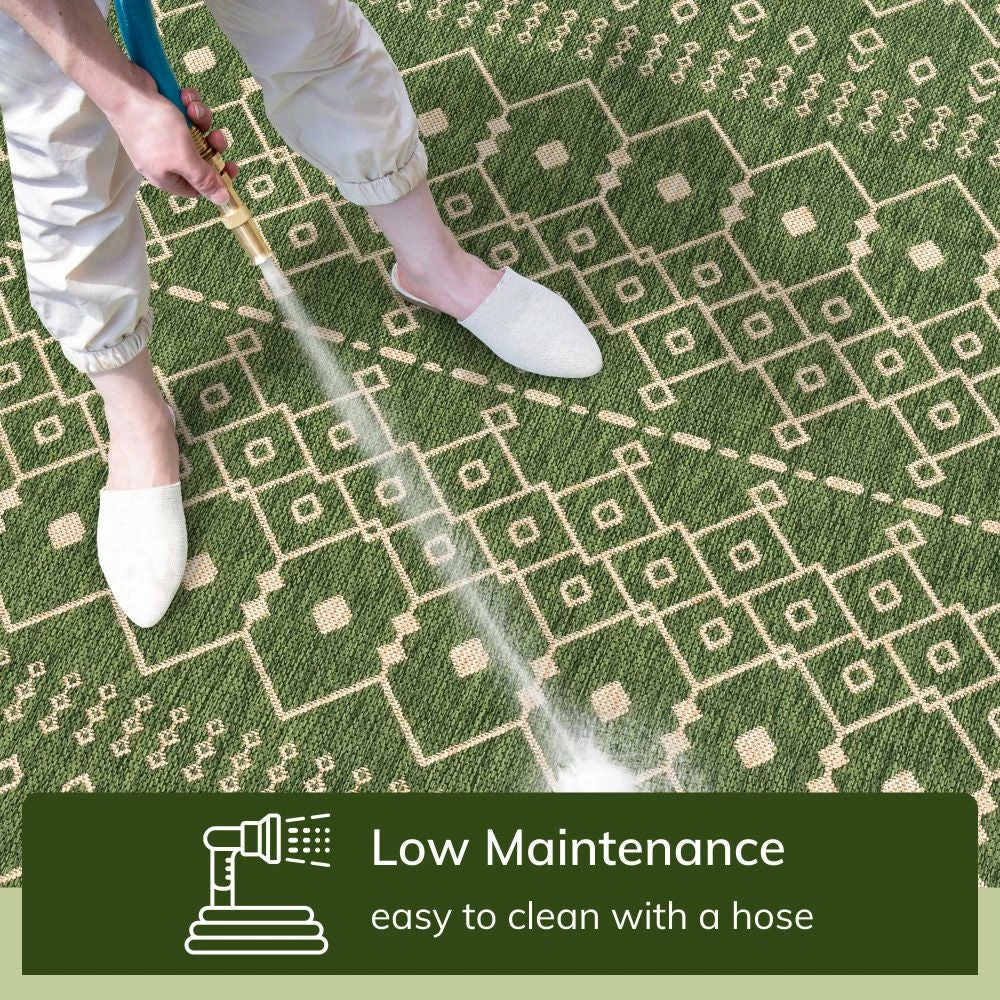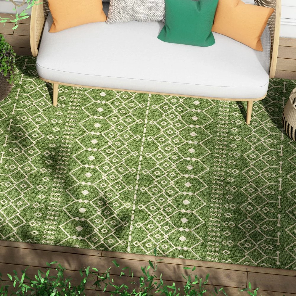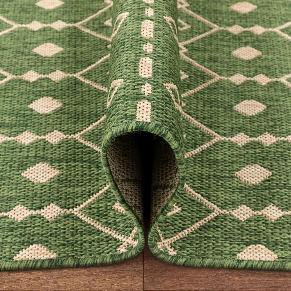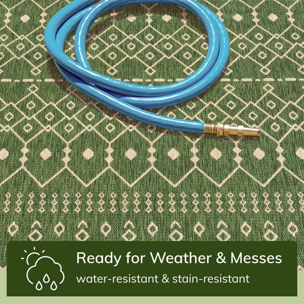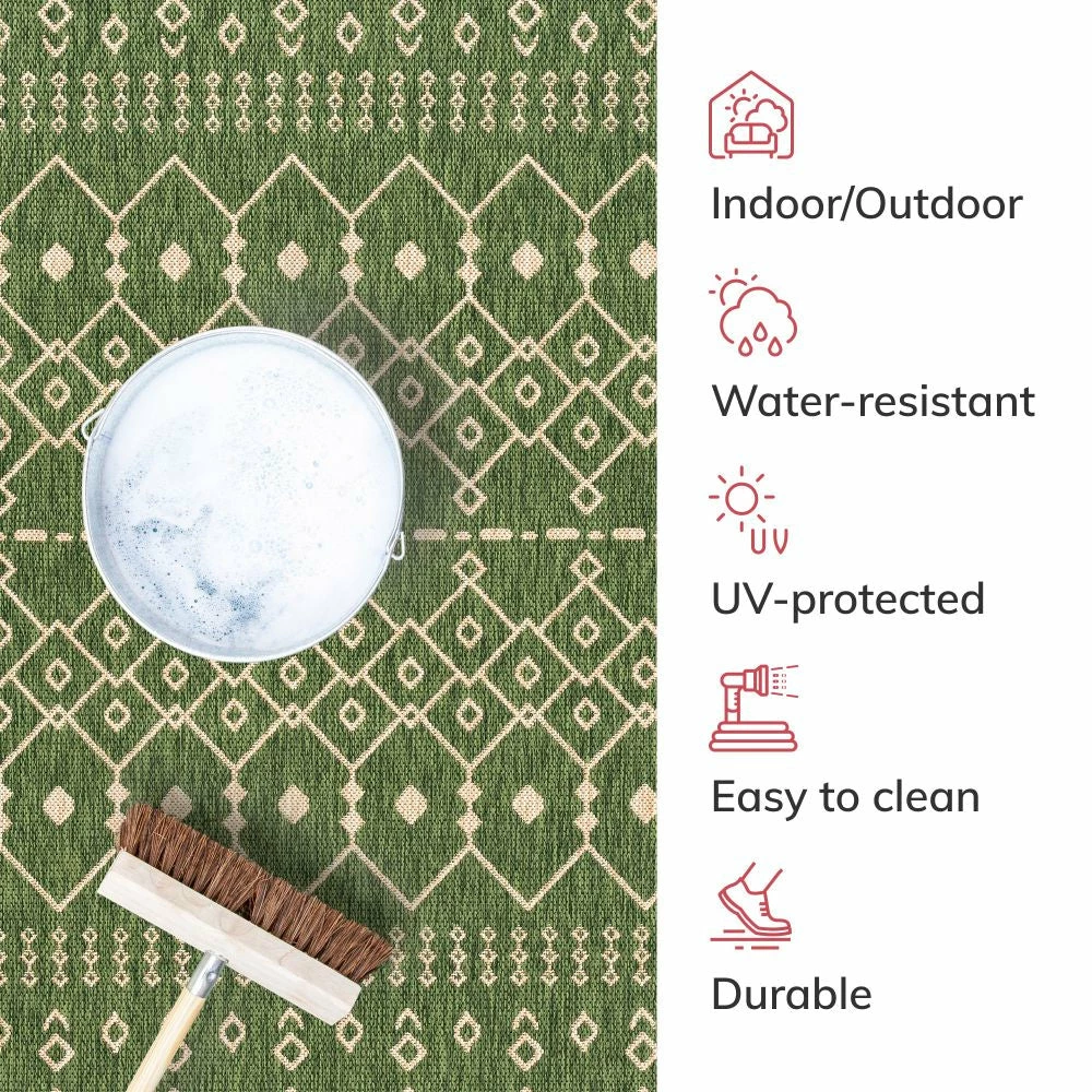 Well Woven Nord Moroccan Tribal Indoor Outdoor Green Flatweave Rug