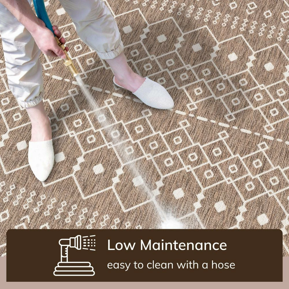 - Features high resistance to tough outdoor conditions with the aesthetics of an indoor rug.