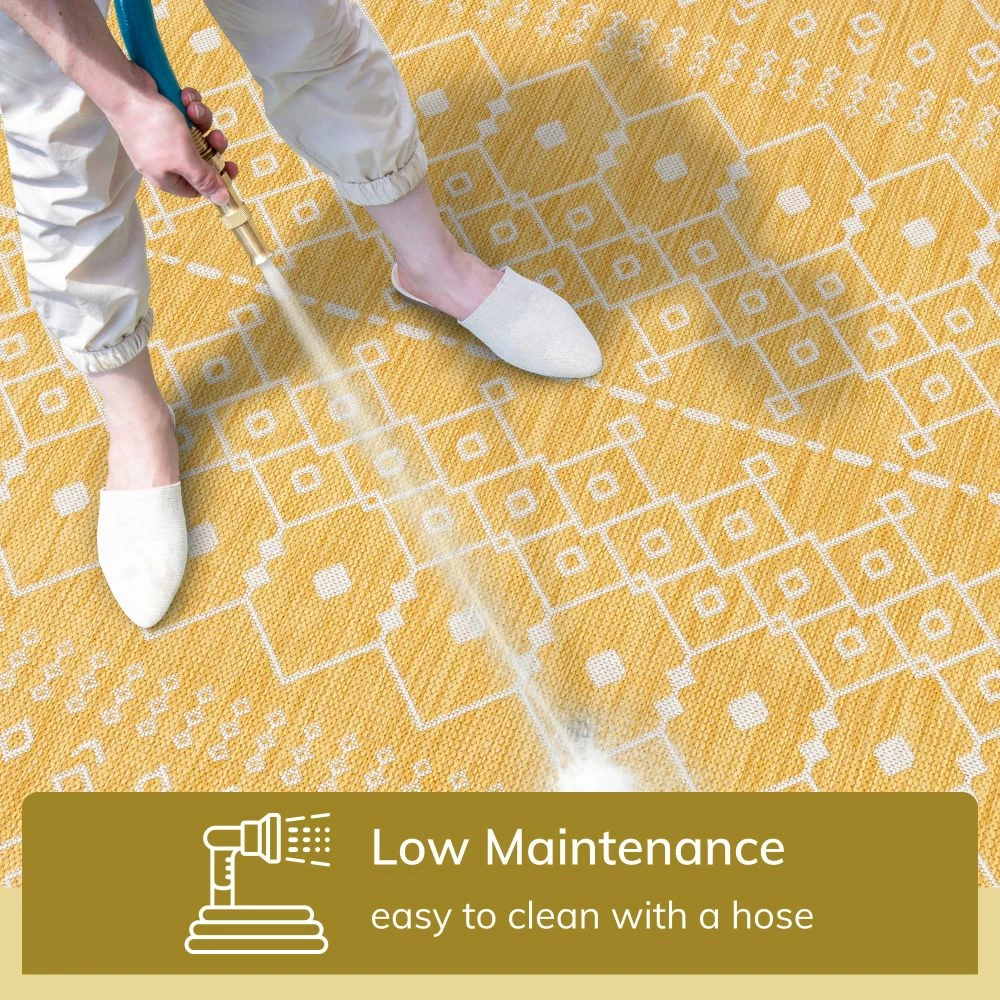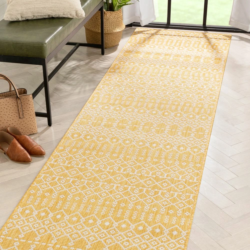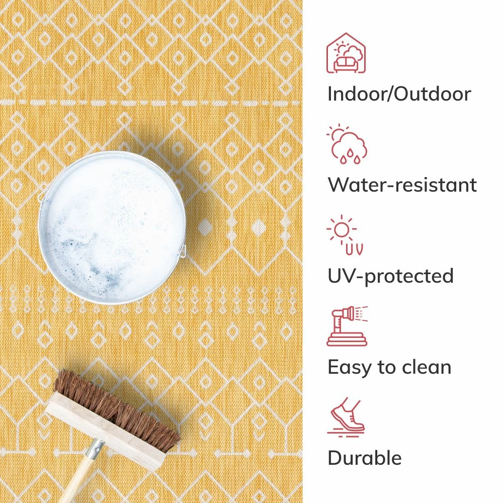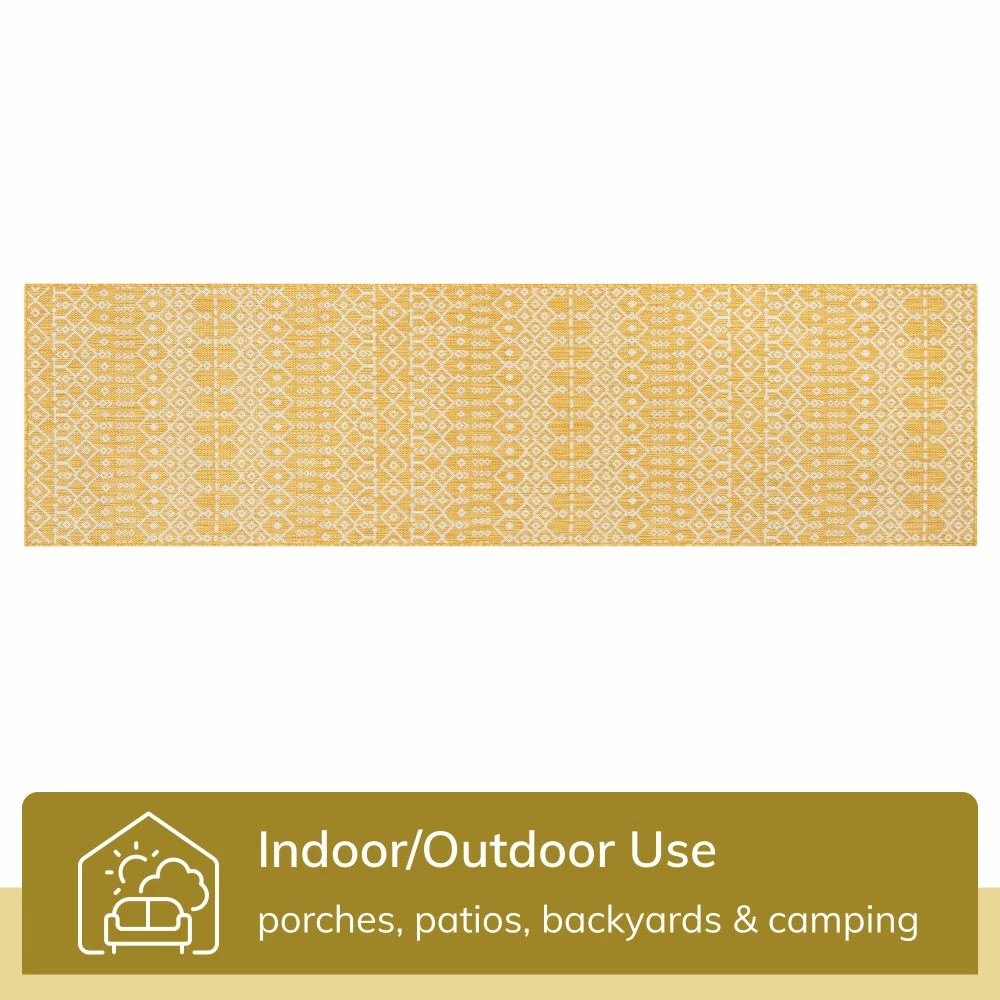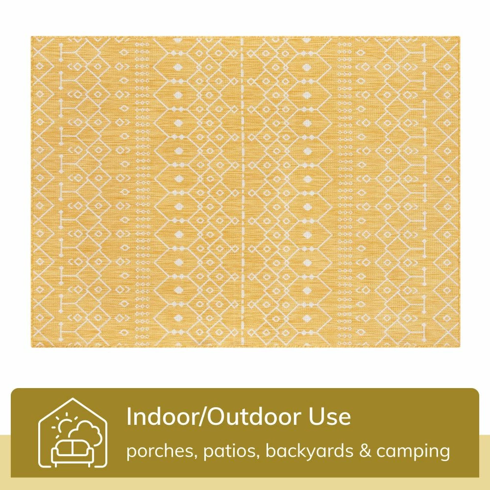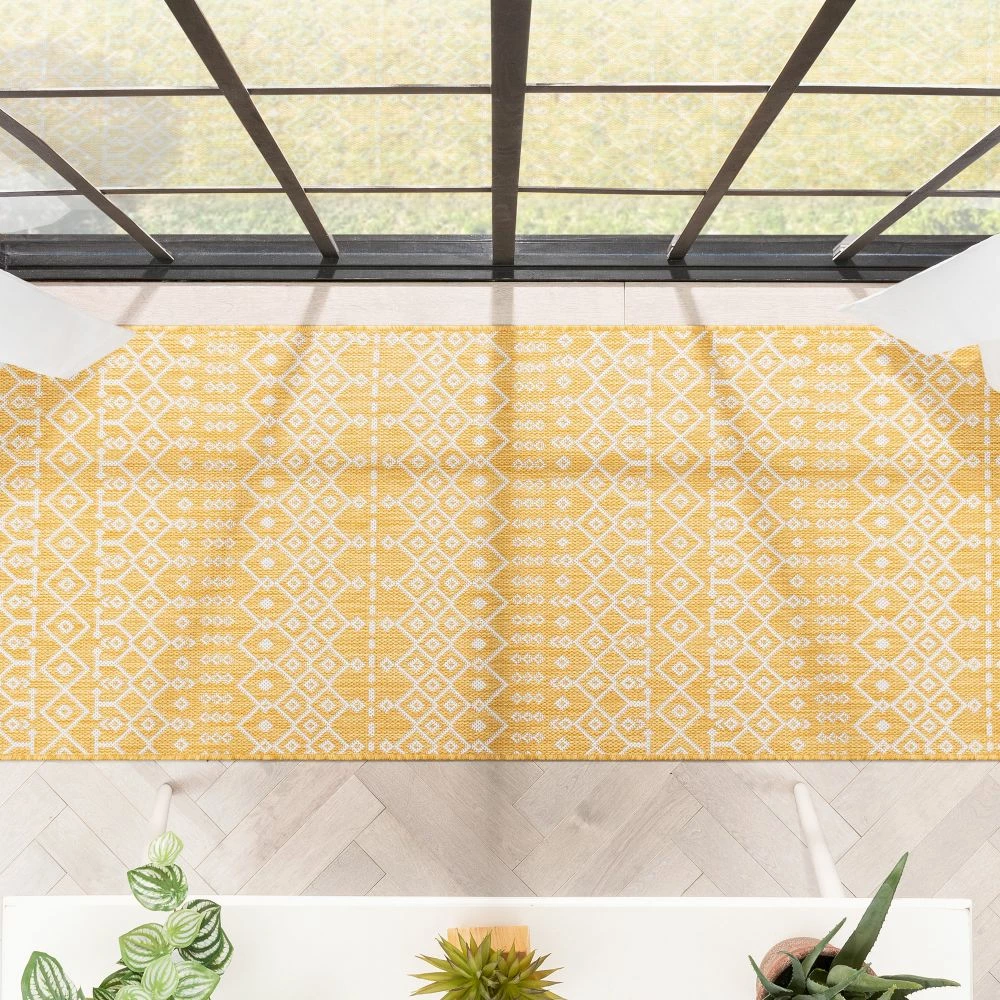 Well Woven Nord Moroccan Tribal Indoor Outdoor Yellow Flatweave Rug