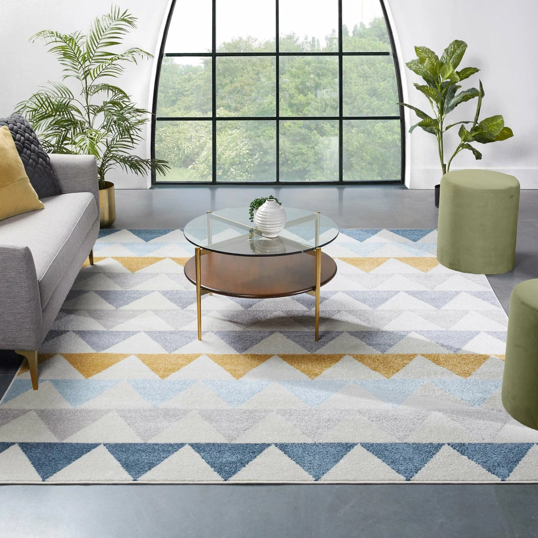 The Mystic Collection is an exciting array of trendy geometric patterns woven in a combination of classic neutral tones and bright, fun colors. From ultra modern swoops, lines and angles to the simple tile or Moroccan trellis, there is a pattern for every room. A 0.4″ pile of air twist frieze polypropylene gives a textured look and soft feel. The yarn is stain resistant and doesn’t shed or fade over time. Durable and easy to clean, these area rugs are made to last.