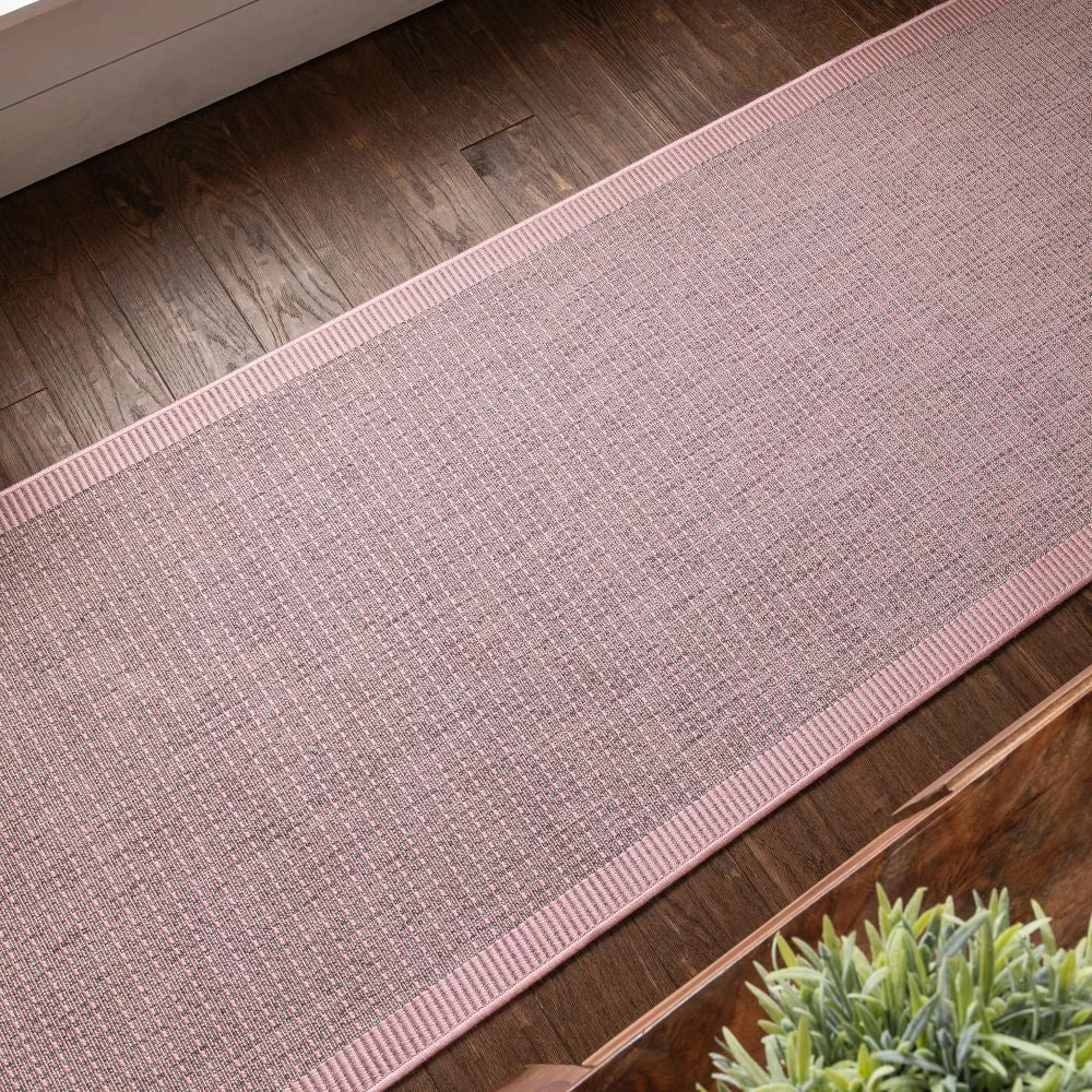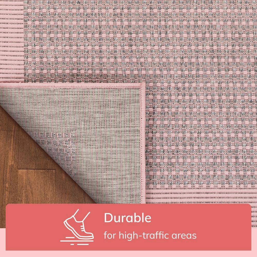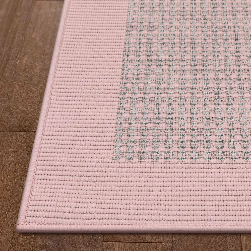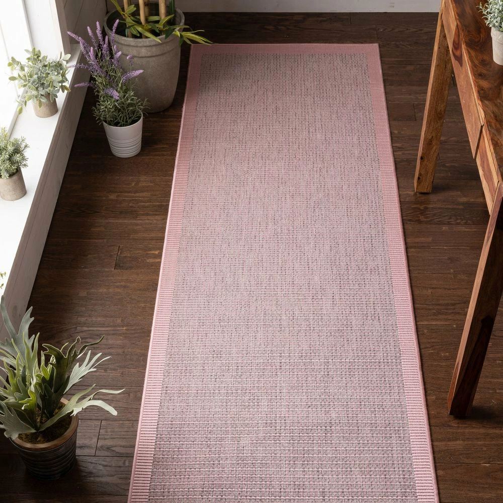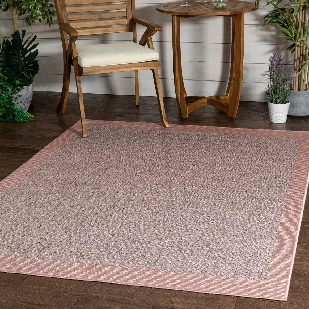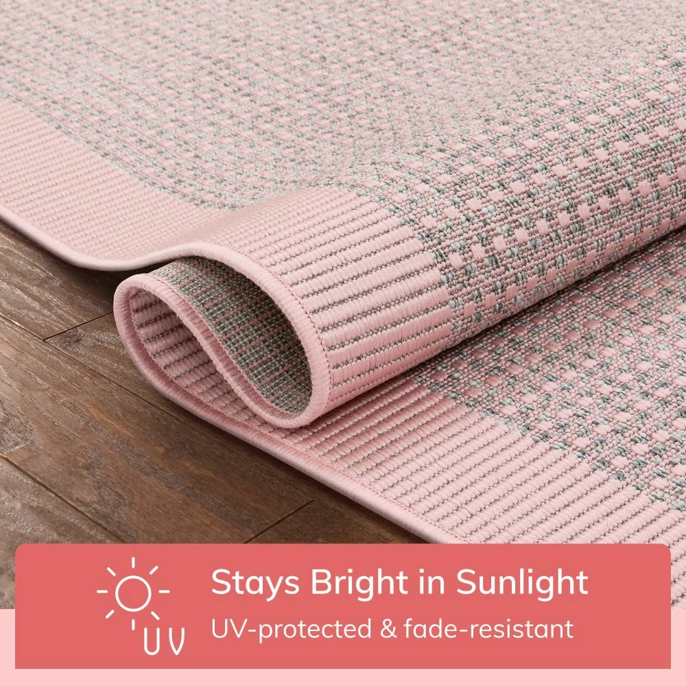 Well Woven Odin Solid & Striped Border Indoor Outdoor Blush Flatweave Rug