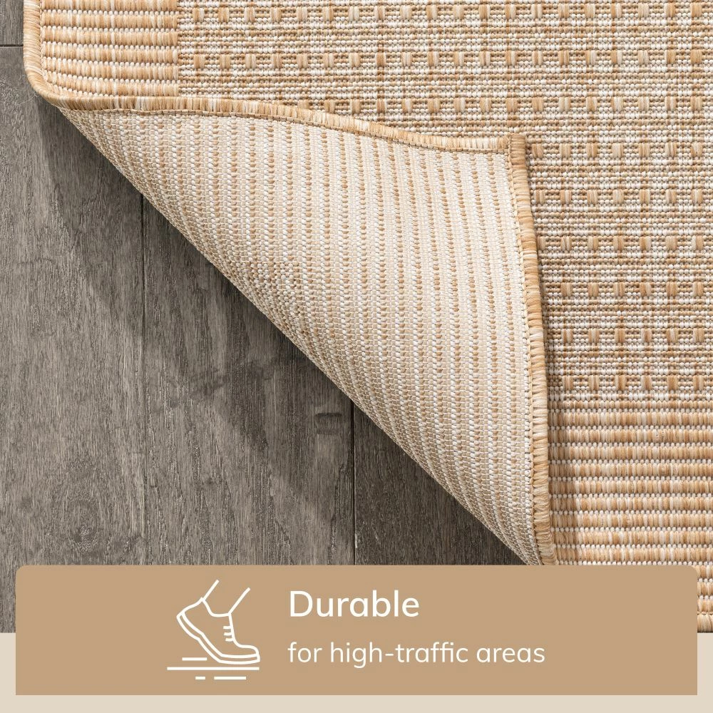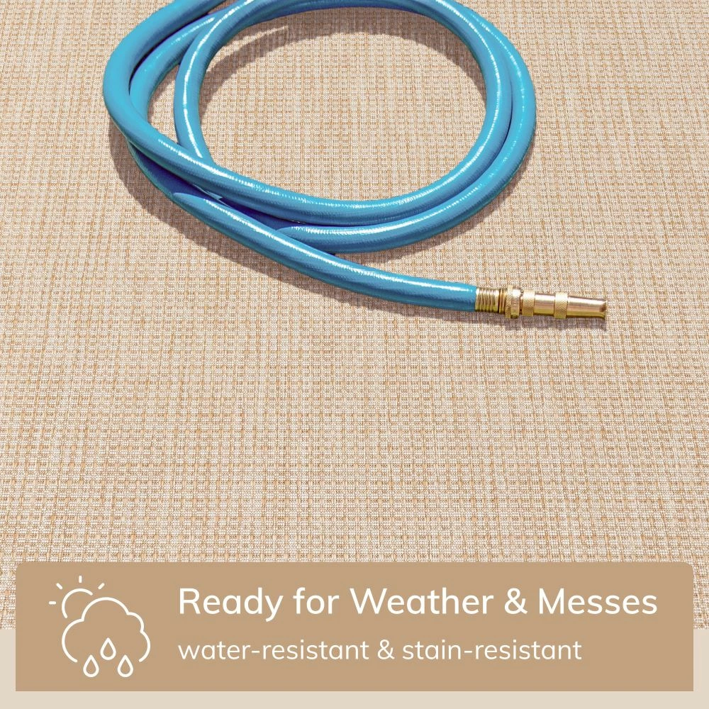 - Features high resistance to tough outdoor conditions with the aesthetics of an indoor rug.