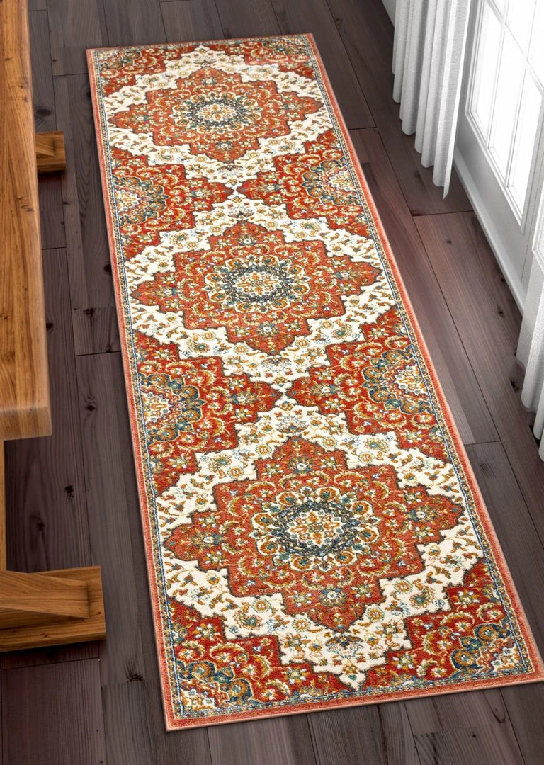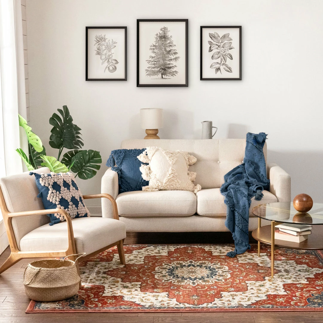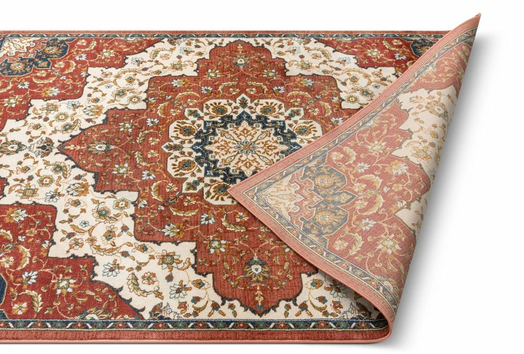 The Tulsa collection draws upon a curated array of traditional Persian, Southwestern, and Moroccan designs. A warm palette of red, blue, and green jewel tones is accented by neutral colors of ivory and beige for a rug that’s easy to match with any decor.