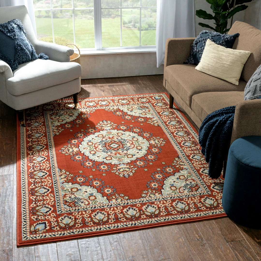 Well Woven Oriental & Persian Malika Traditional Medallion Persian Floral Terracotta Rug