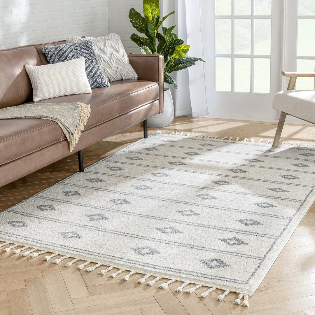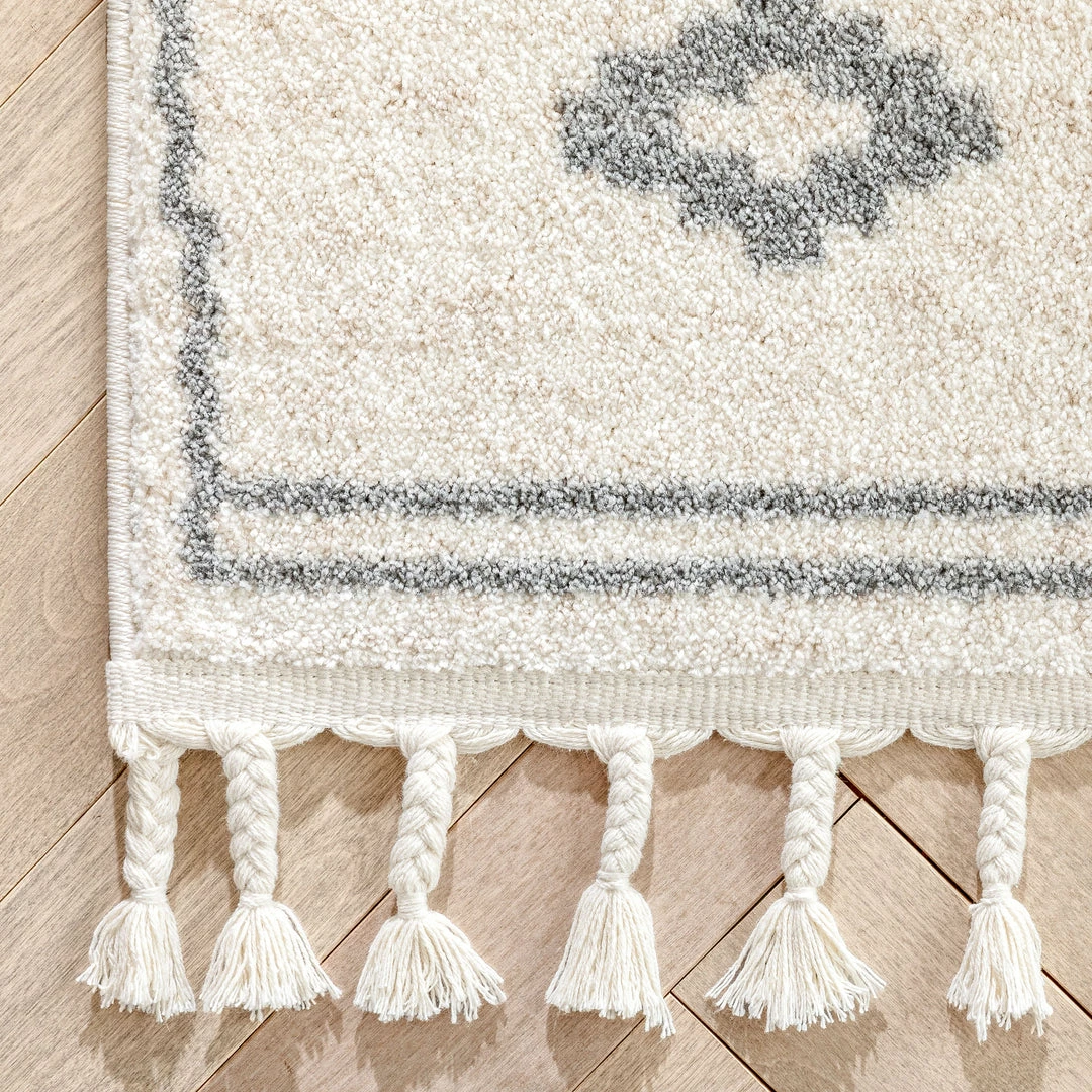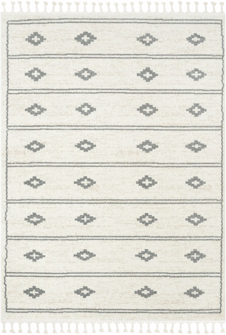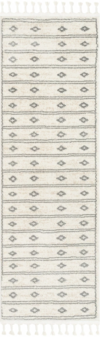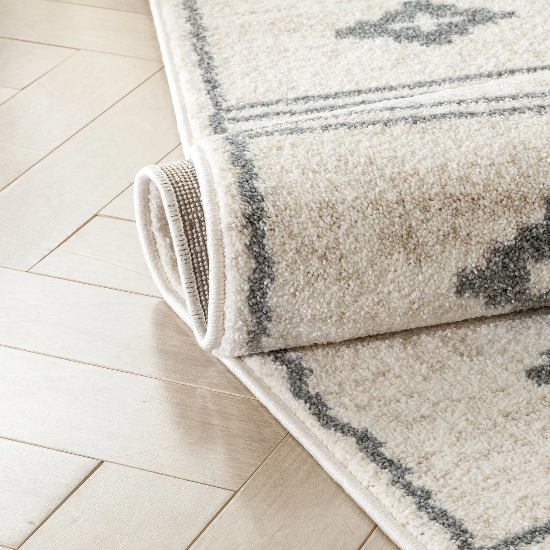 Well Woven Parallel Moroccan Tribal Diamond Pattern Ivory Grey Rug