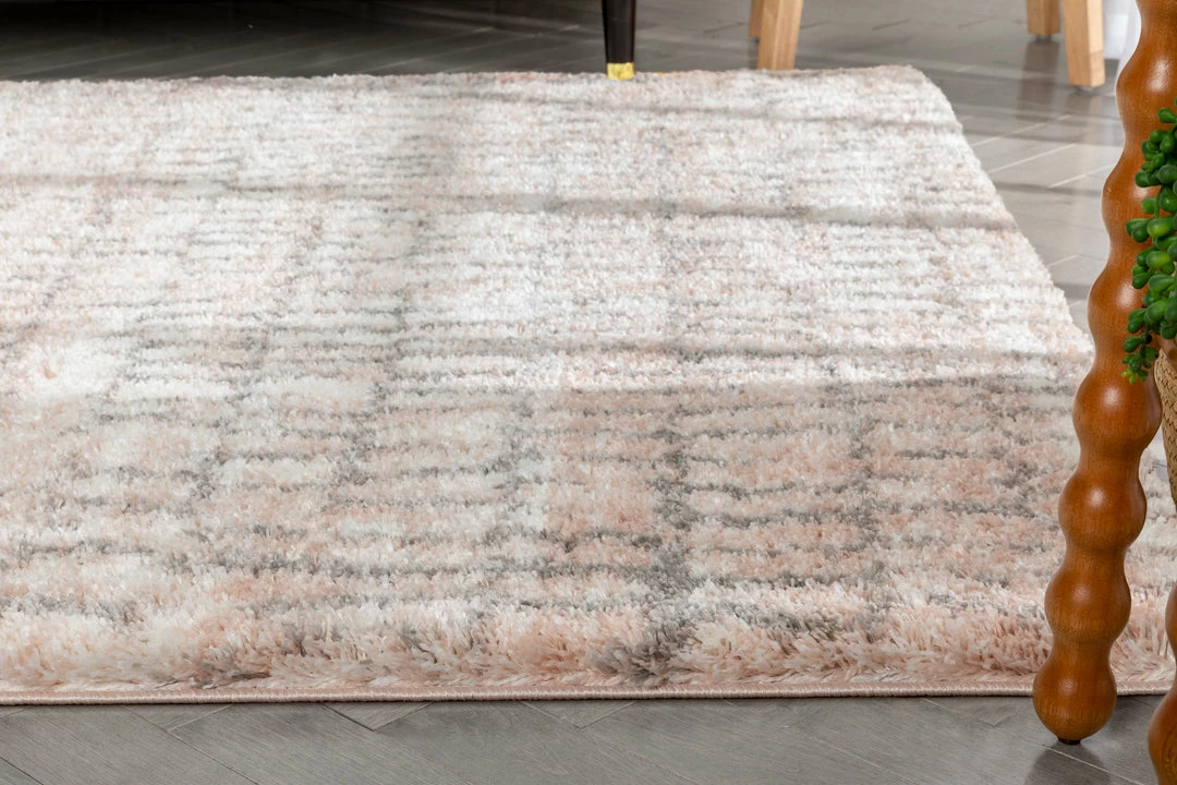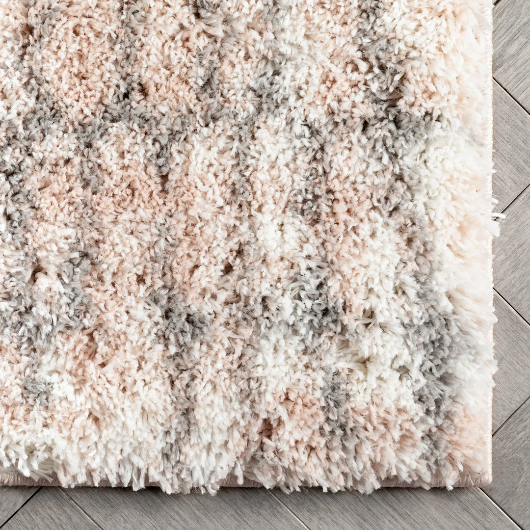 Well Woven Sintra Mid-Century Modern Geometric Pattern Blush Thick & Soft Shag Rug
