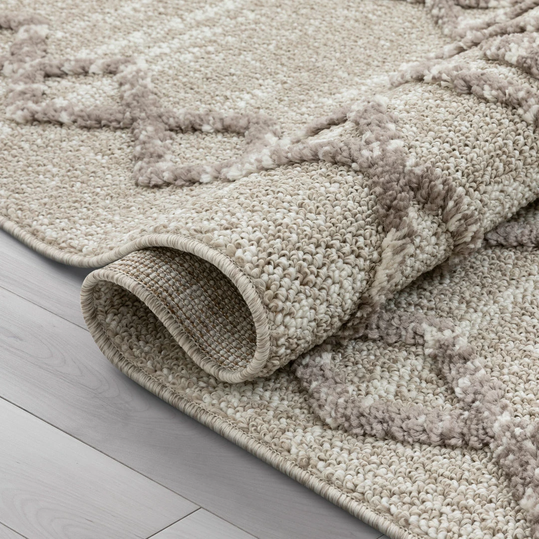- Cut and loop, 0.4″ high-low pile.