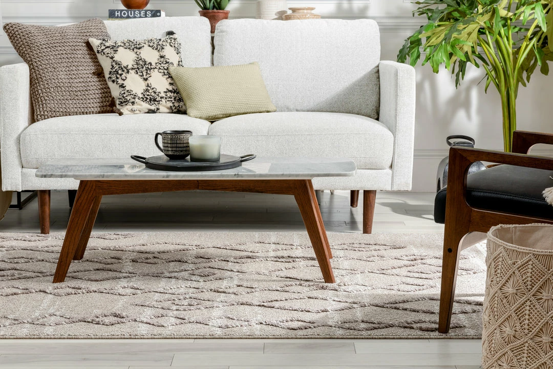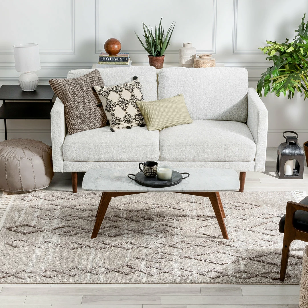 The Salem Collection’s globally inspired, distressed tribal patterns make the perfect centerpiece to a calming space. Ground yourself on a dense, looped pile that features soft, high-low pattern accents lending plushness and a rustic, chunky texture. Breathe easy knowing the yarn is stain resistant and easy to clean while the jute backing is wood floor safe.