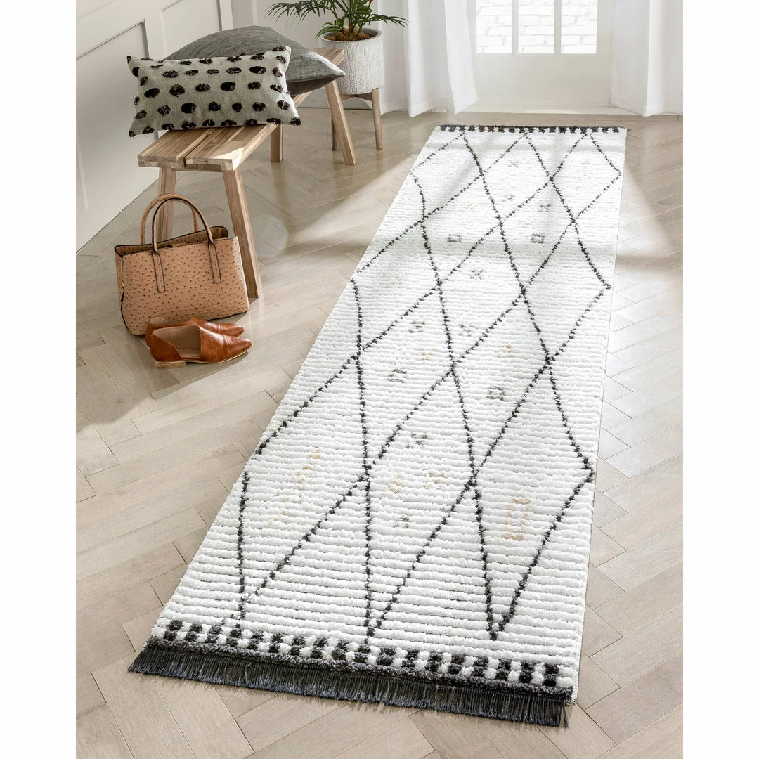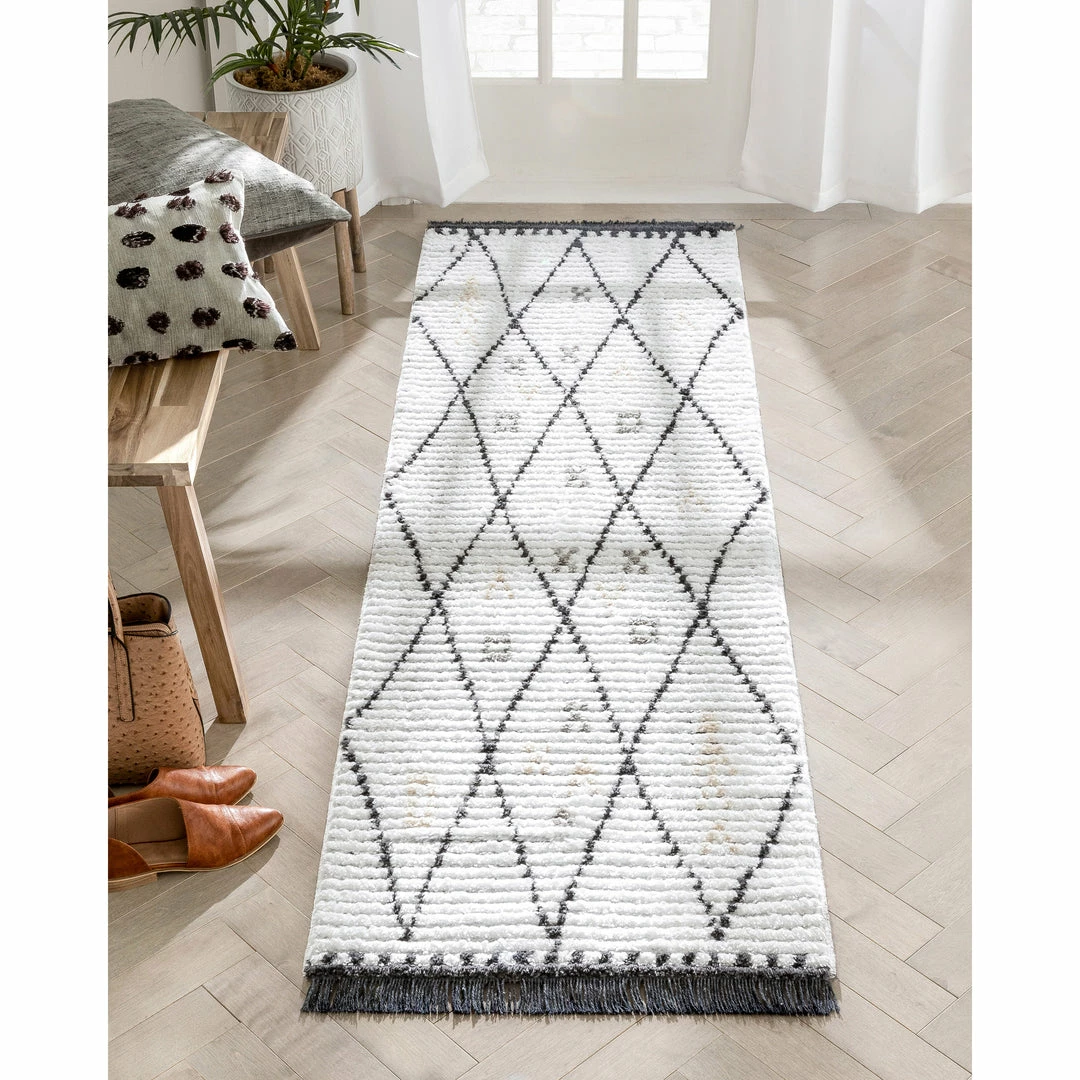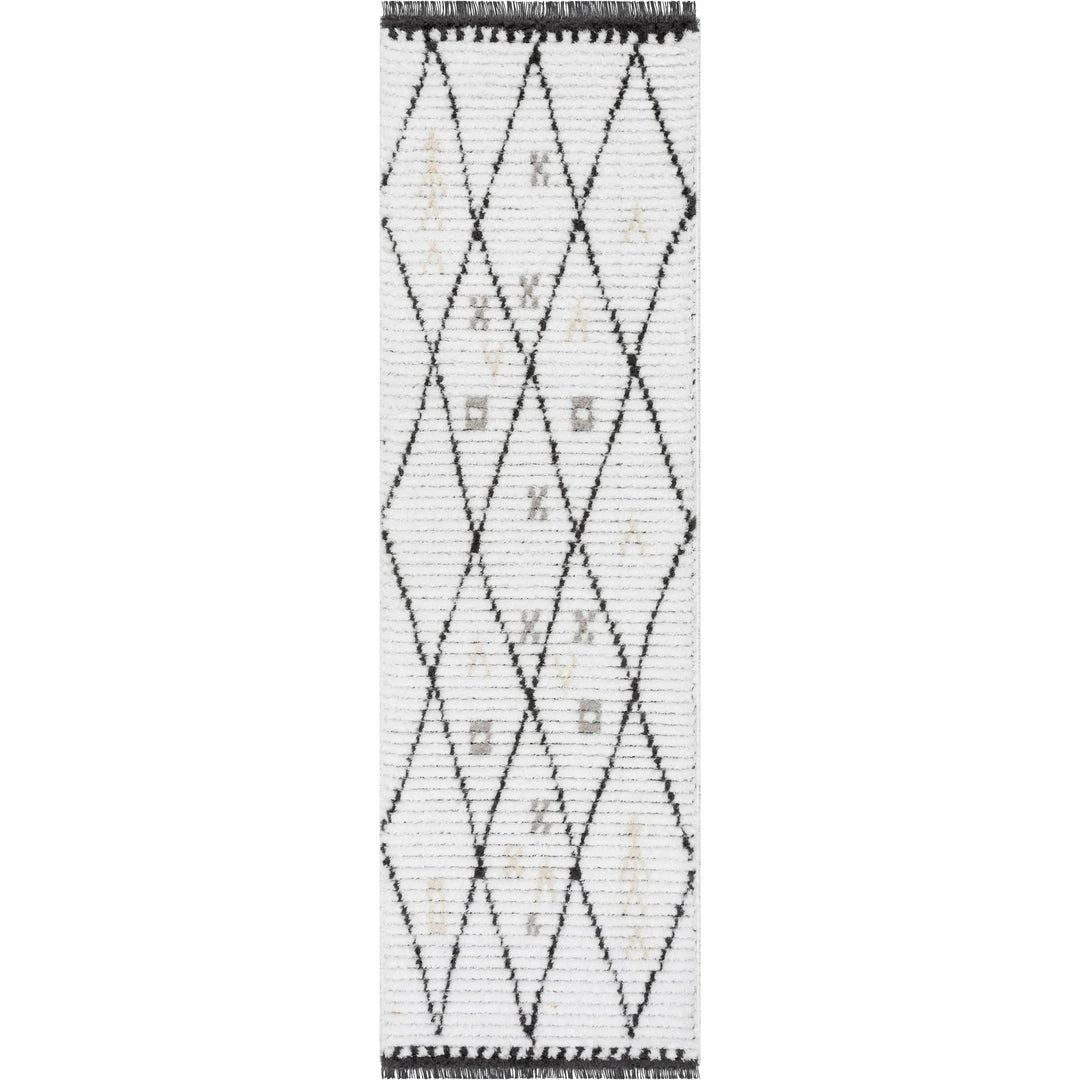 Well Woven Soyala Tribal Diamond Lattice Pattern Grey High-Low Textured Pile Rug Global
