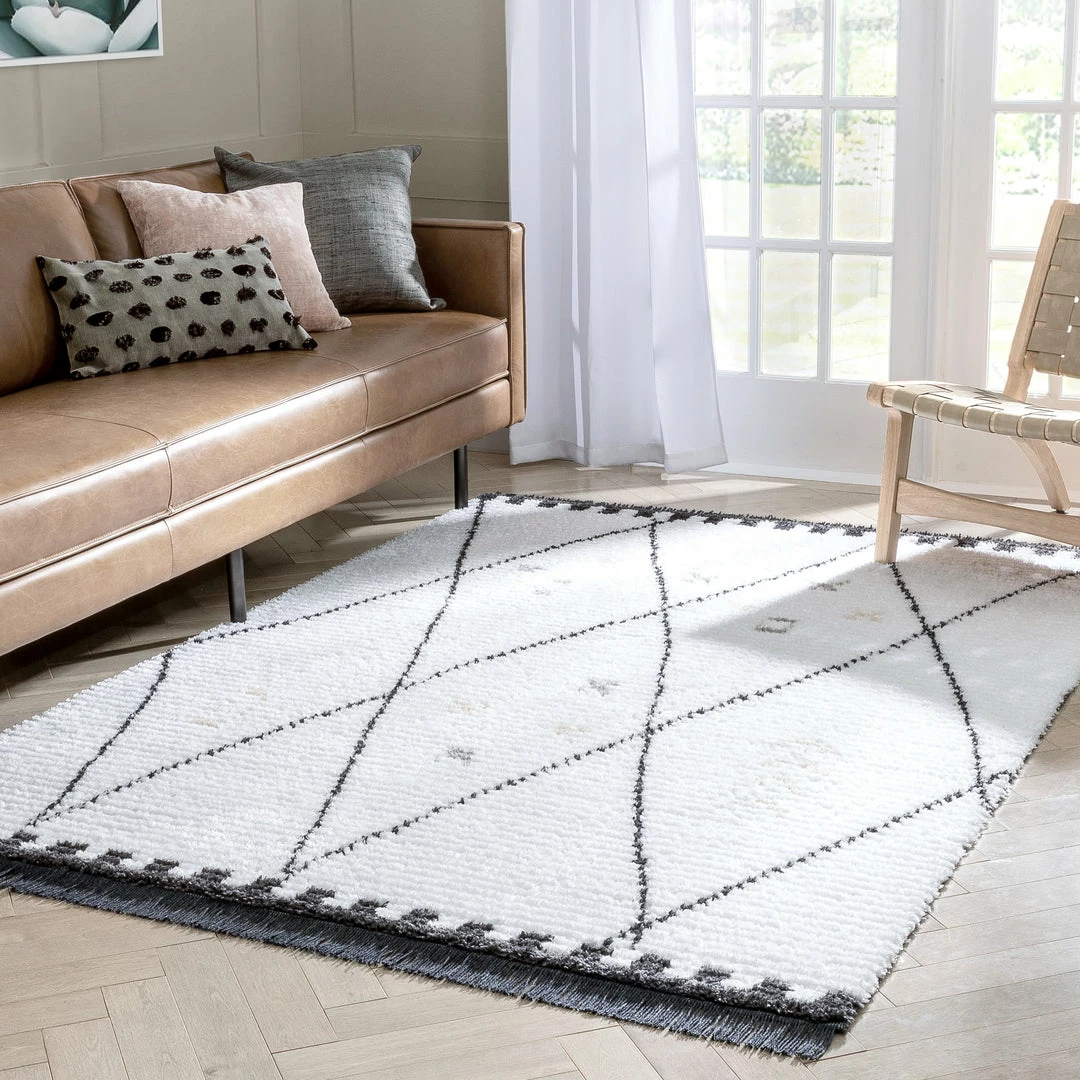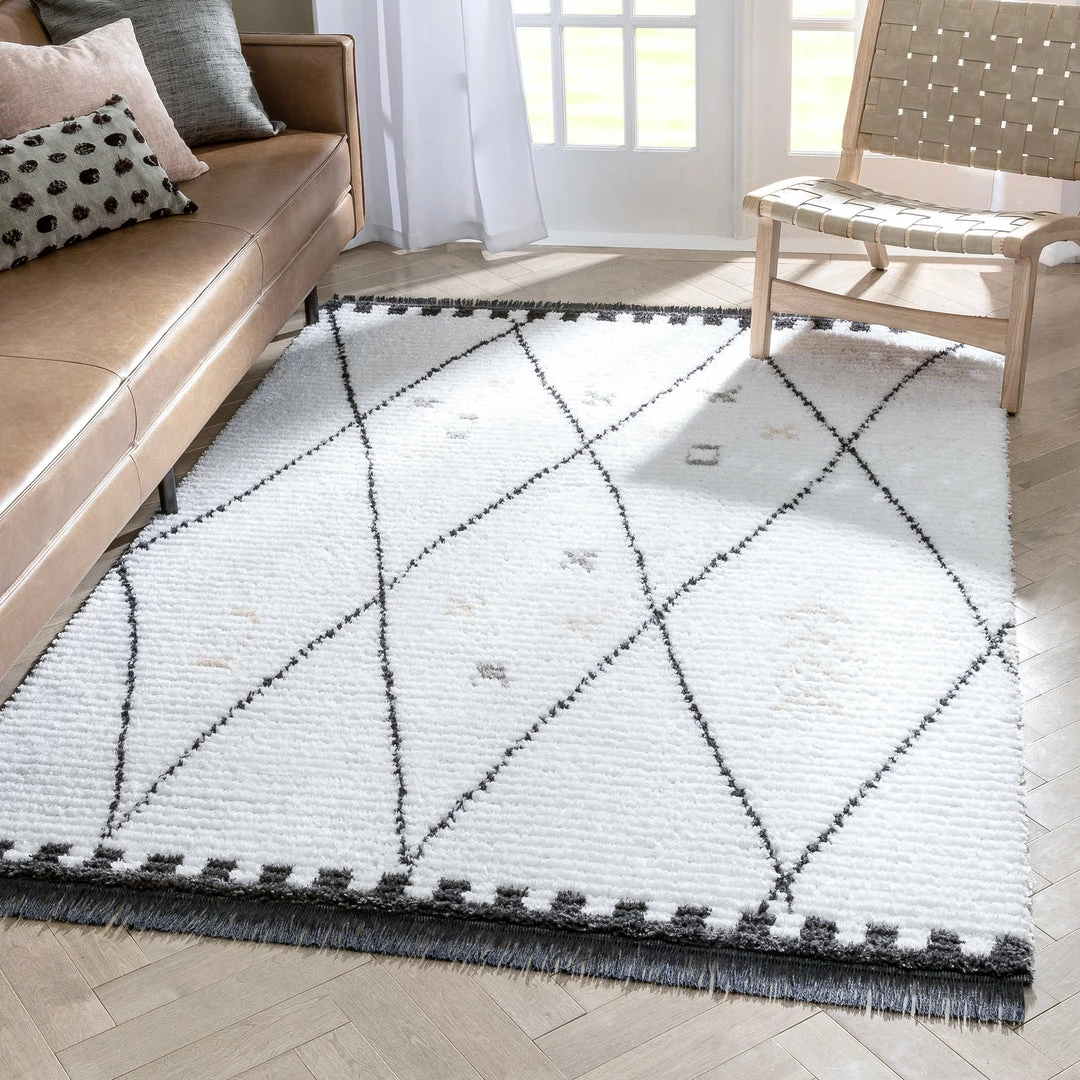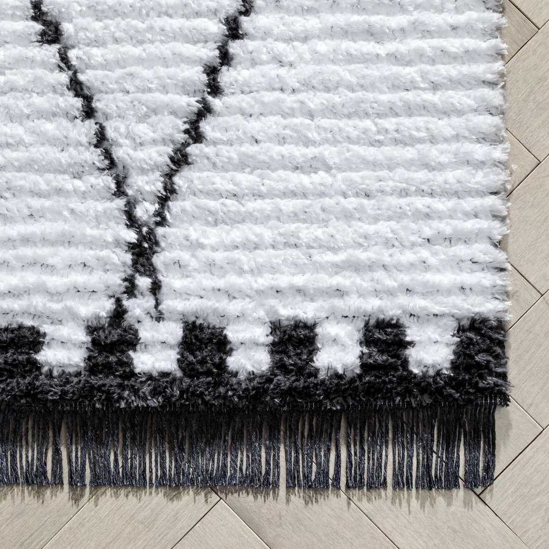 Well Woven Soyala Tribal Diamond Lattice Pattern Grey High-Low Textured Pile Rug Global