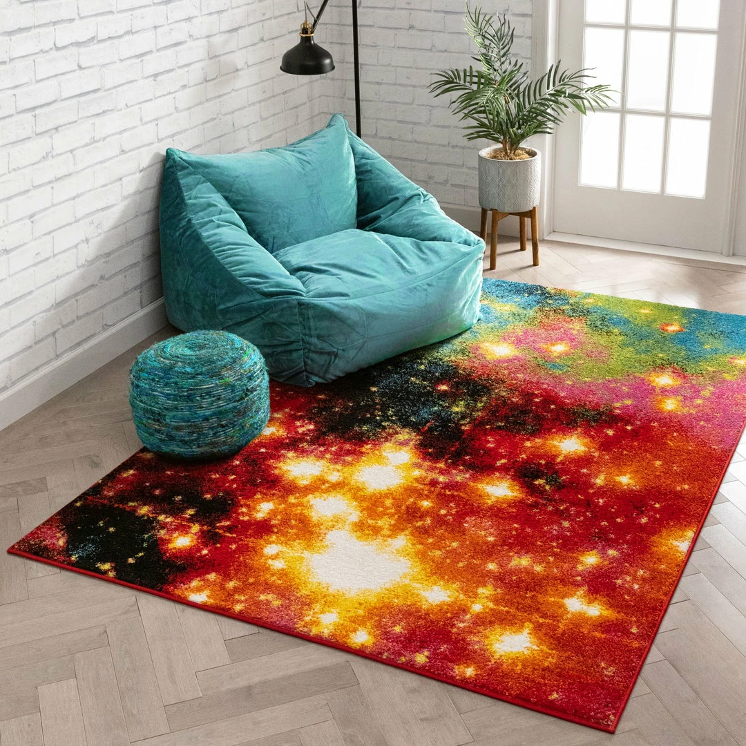 Long live good design! The Viva collection is a playful expression of all the bright, rainbow-colored fun life has to offer. Exciting geometric designs range in style from abstract scenes of nature to dazzling, abstract patterns. Vibrant multicolored dyes will make these rugs the centerpiece of any room and a plush 0.4″ pile of air twist frieze polypropylene gives an exceptionally textured look. The yarn is soft, stain resistant, and doesn’t shed or fade over time. Perfectly suited for your decor and for your busy lifestyle.