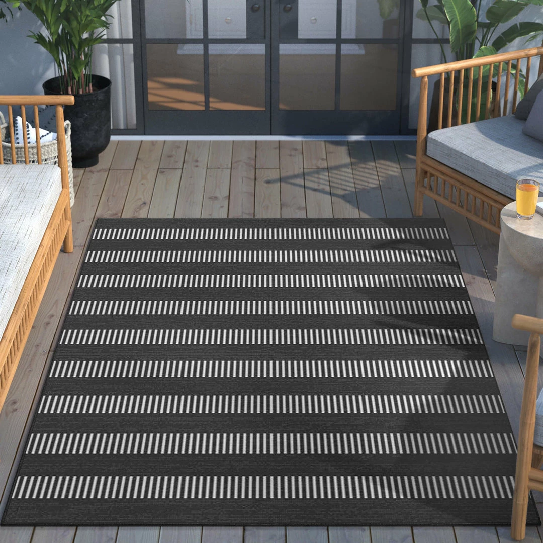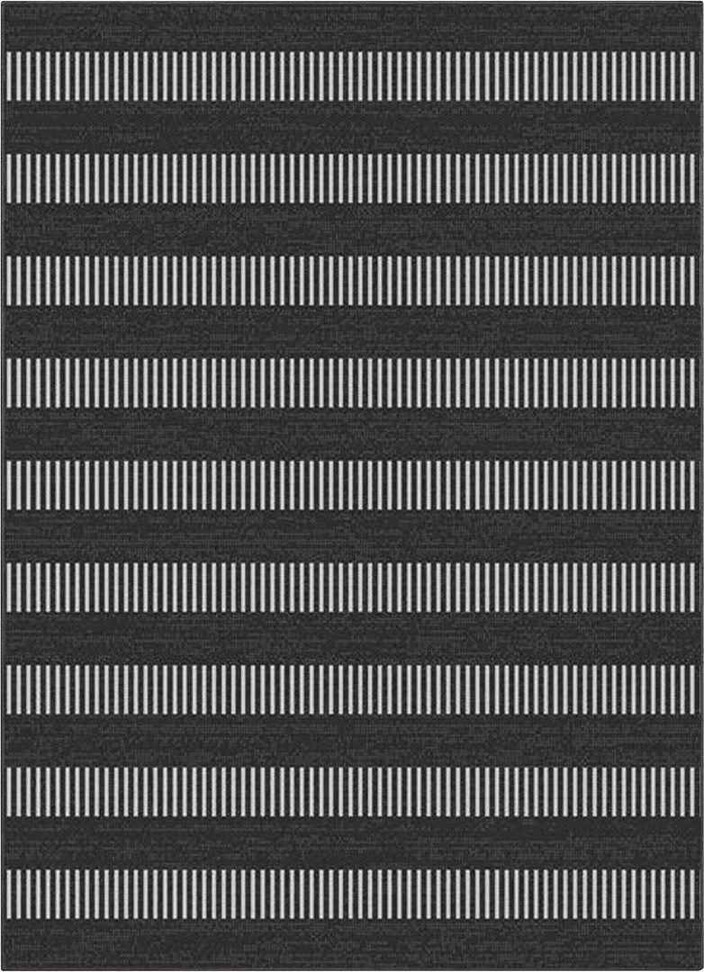 Well Woven Stria Modern Stripes Indoor/Outdoor Black Flat-Weave Rug