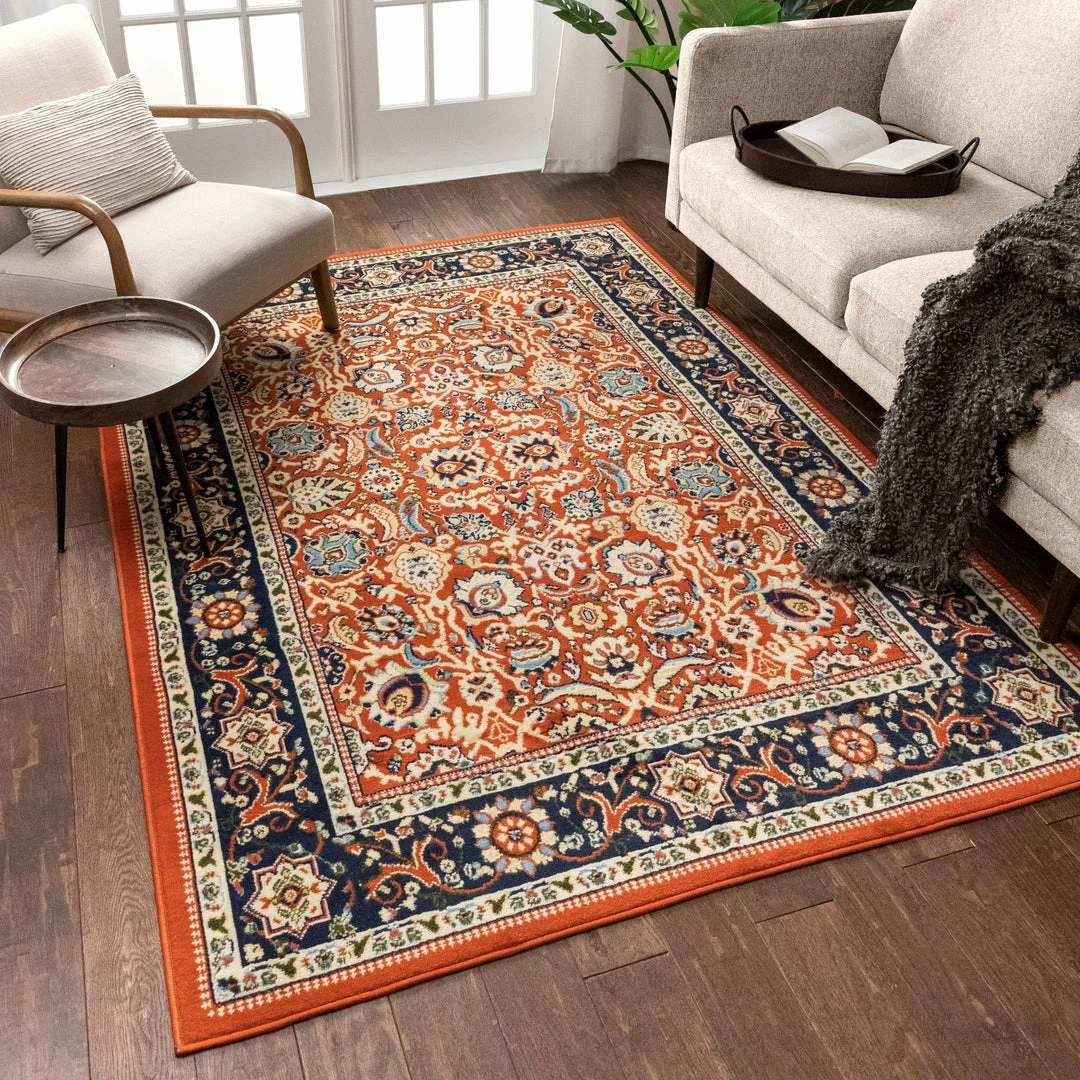 Well Woven Tabriz Traditional Terracotta Rug Oriental & Persian