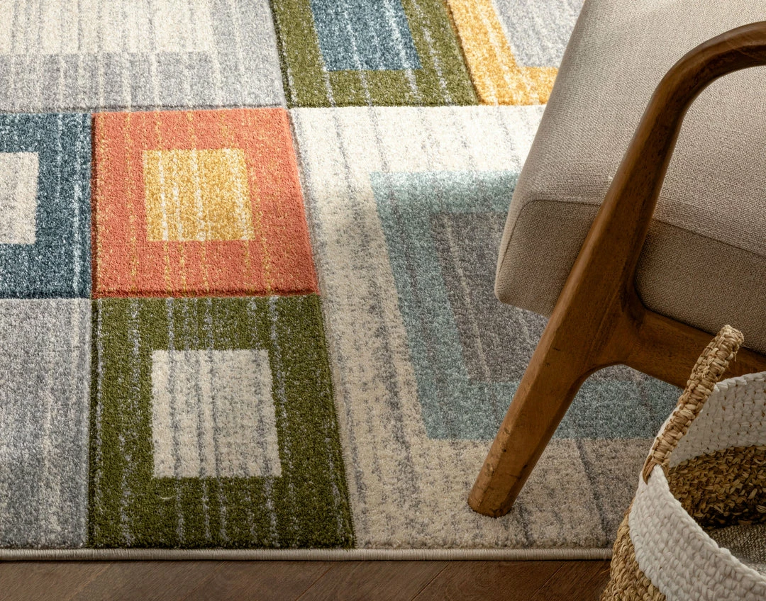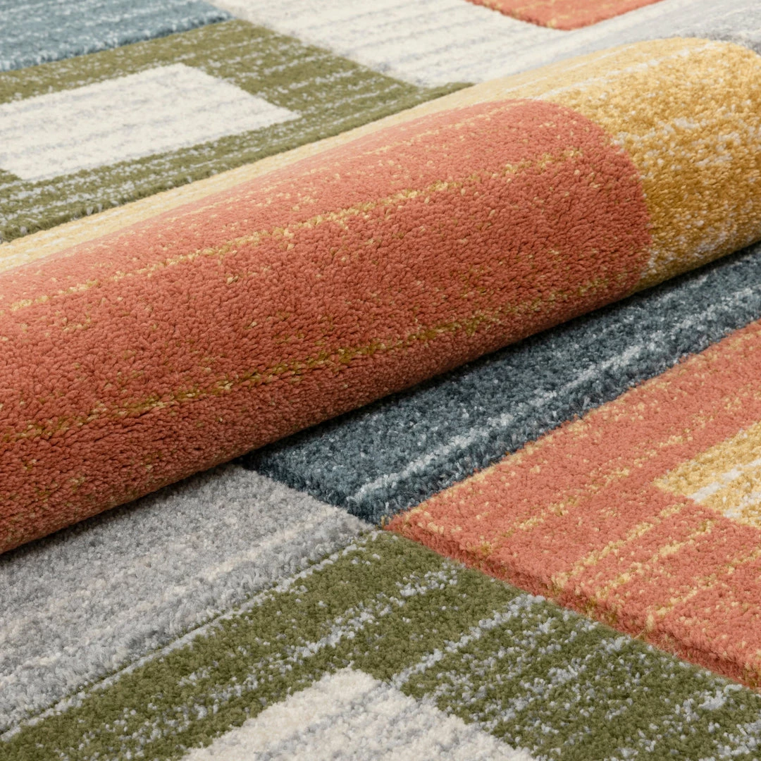 Well Woven Tango Mid-Century Modern Geometric Squares Multi Distressed High-Low Rug