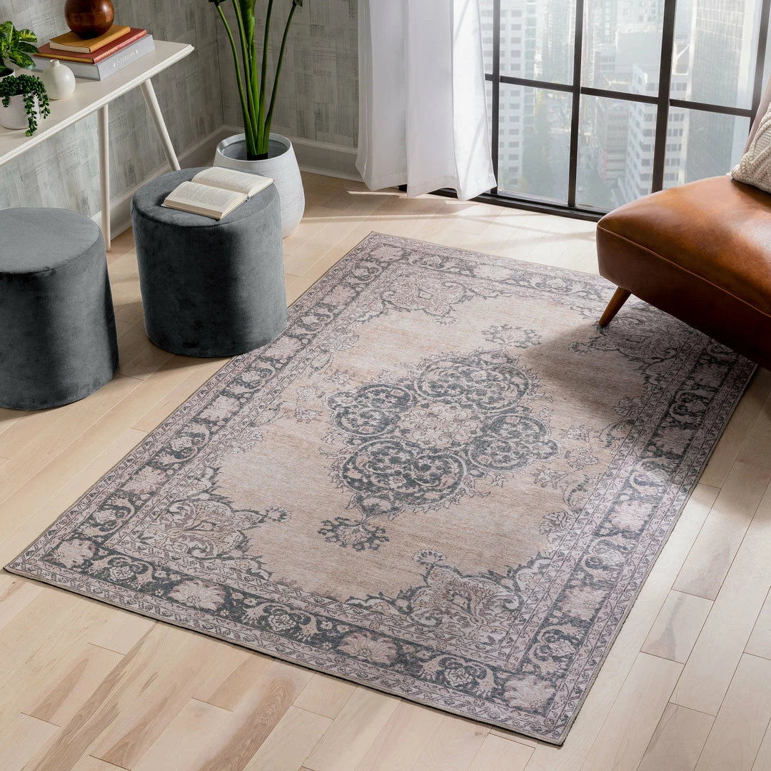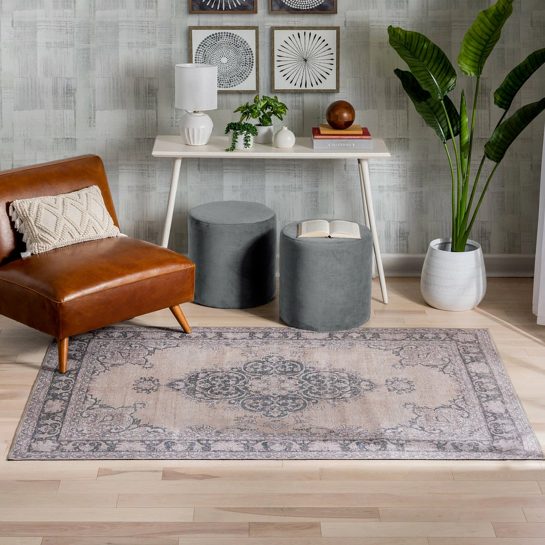 The machine washable Nile collection combines contemporary colors, an elegant medallion pattern, a wood-floor-safe backing, and durable construction for a modern and convenient rug. The kid and pet safe materials are stain resistant and easy to spot clean, making these rugs ideal for a busy family.