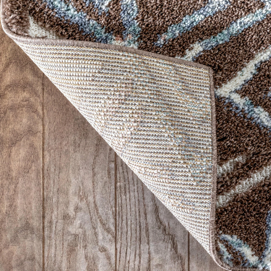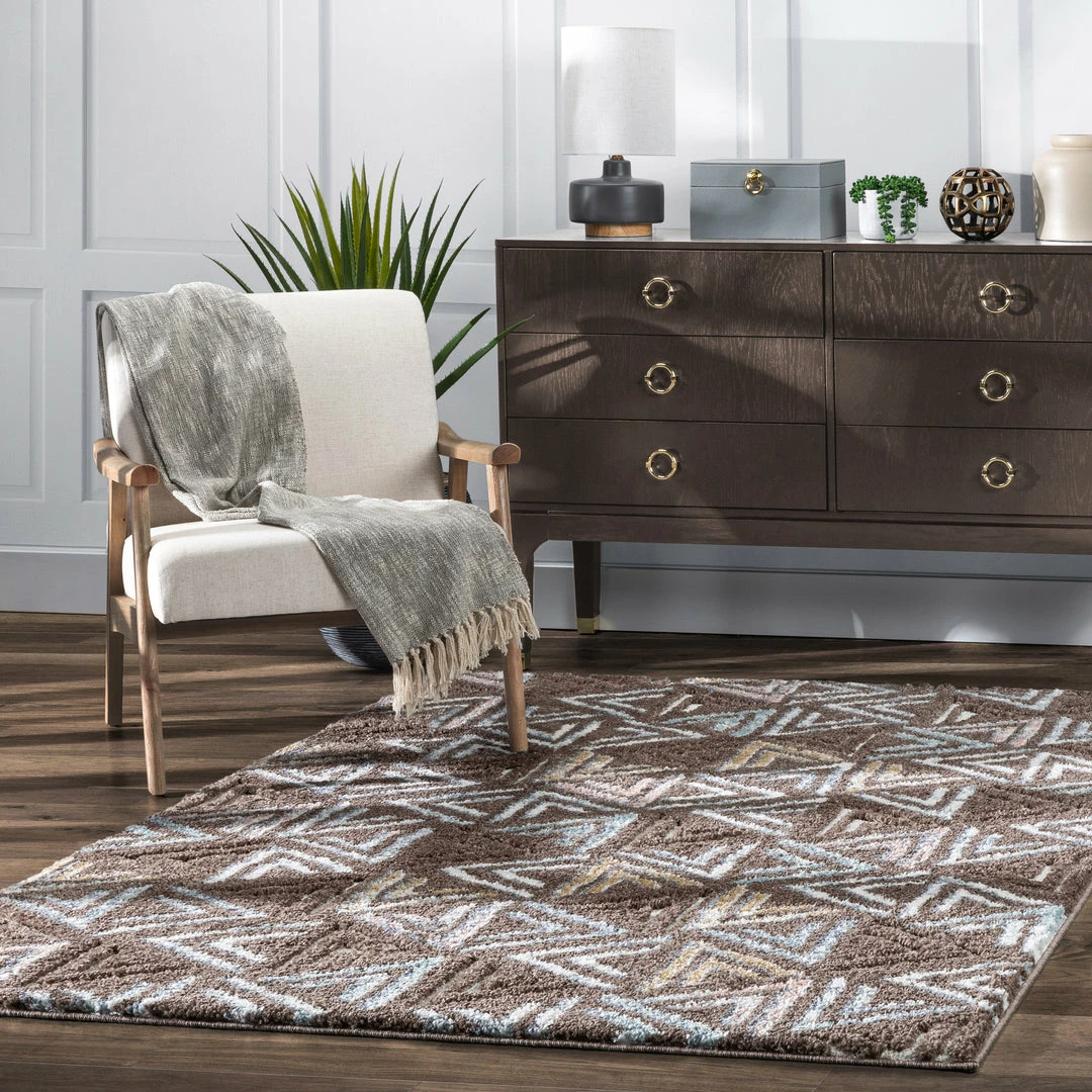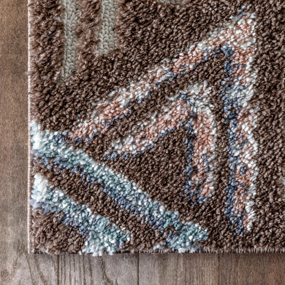 Well Woven Thanatos Modern Geometric Brown High-Low Shag Rug Vintage
