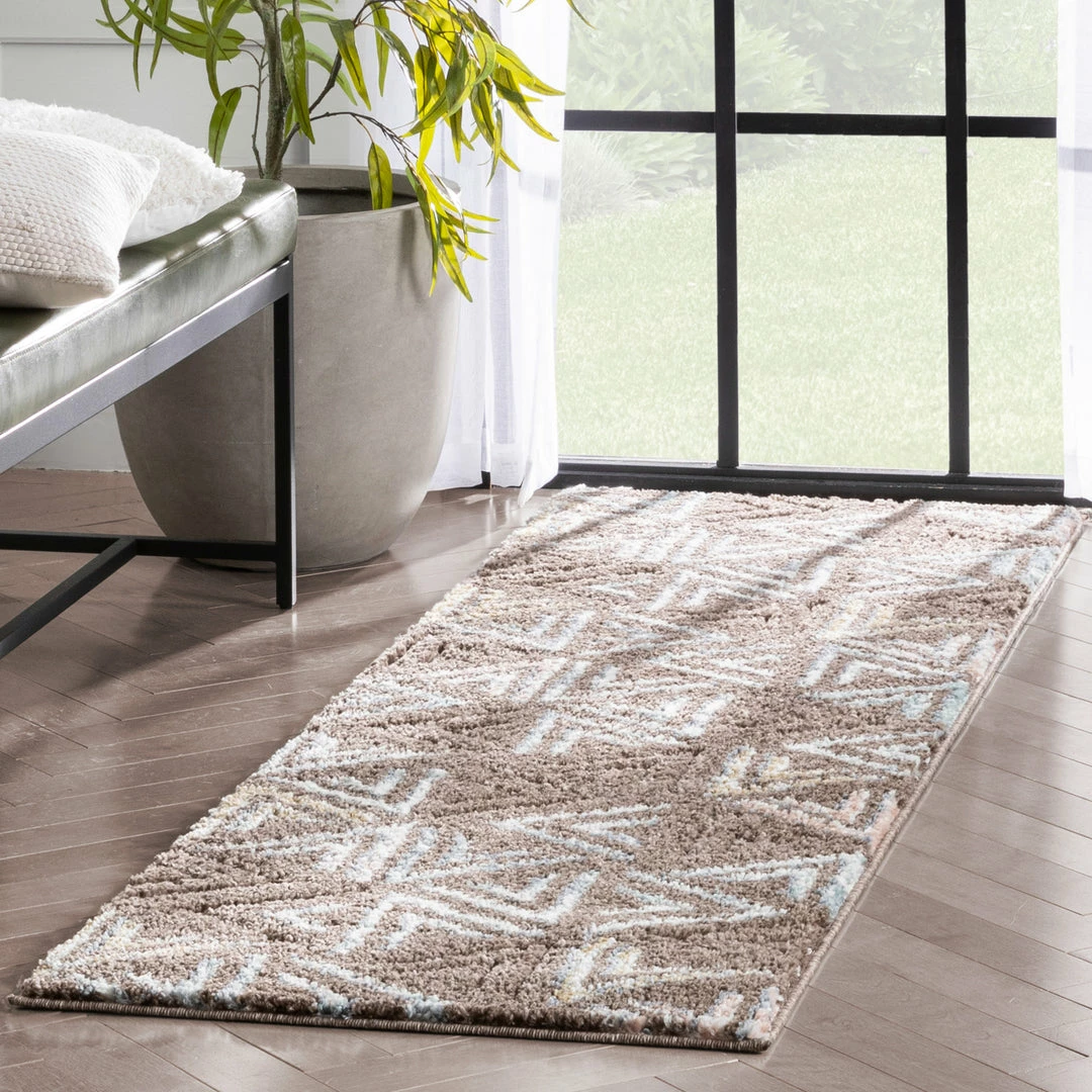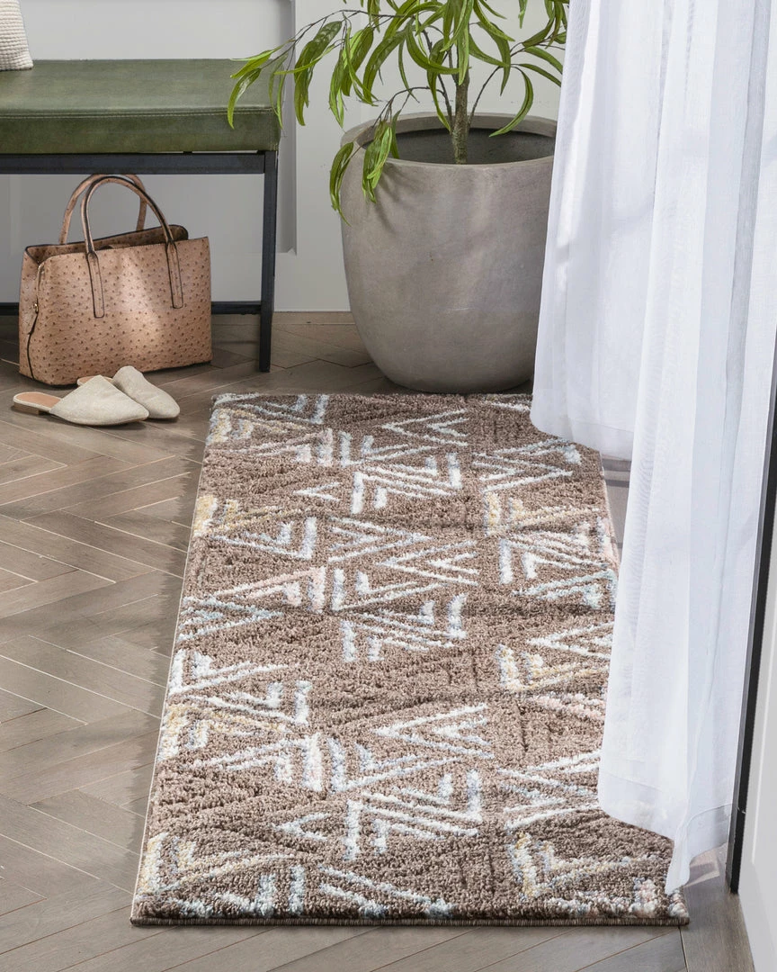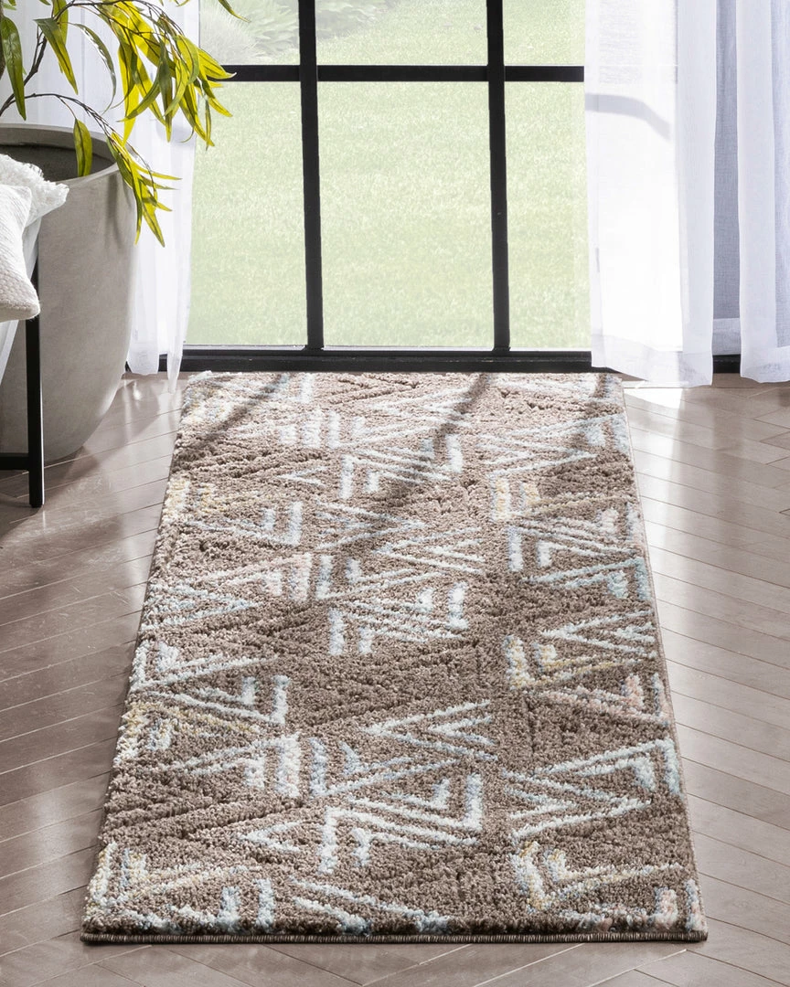 Well Woven Thanatos Modern Geometric Brown High-Low Shag Rug Vintage