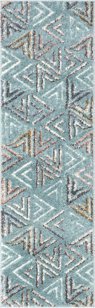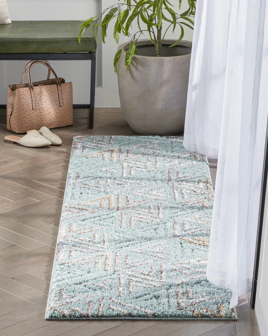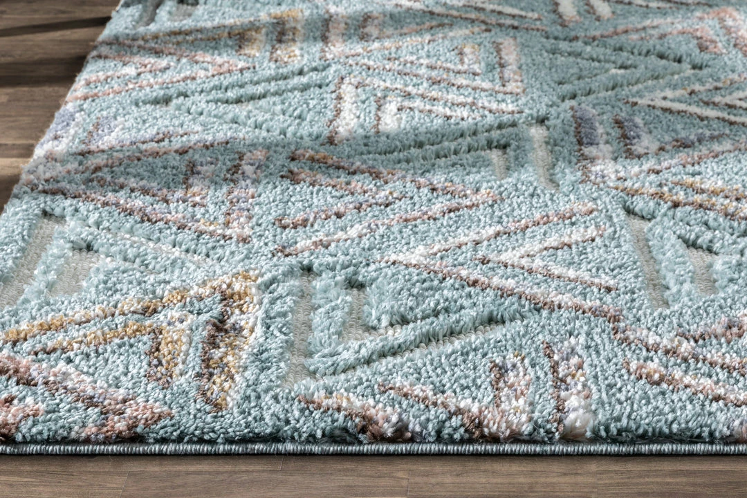 Well Woven Thanatos Modern Geometric Light Blue High-Low Shag Rug