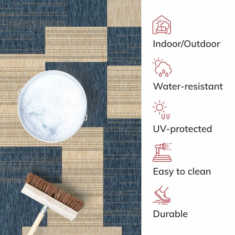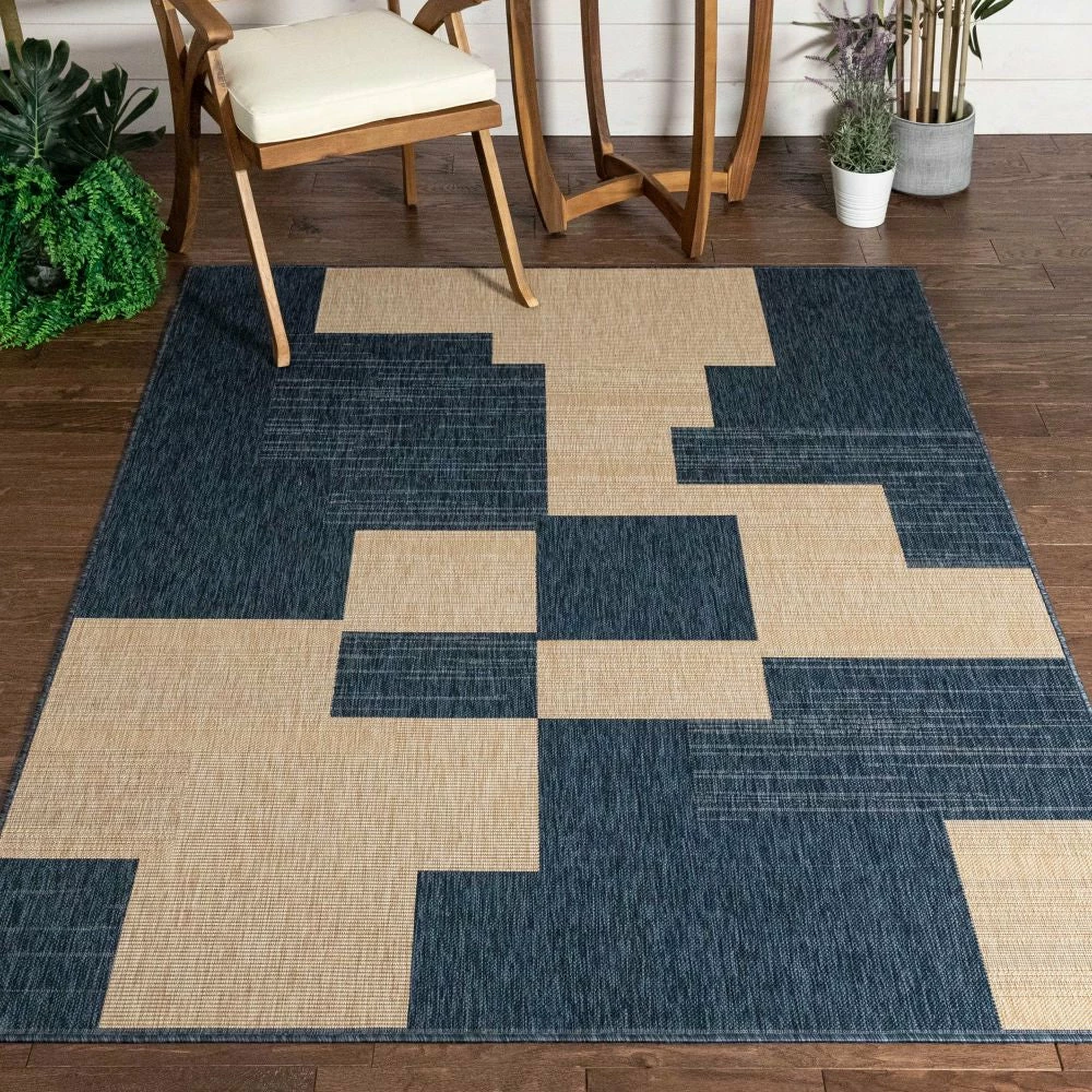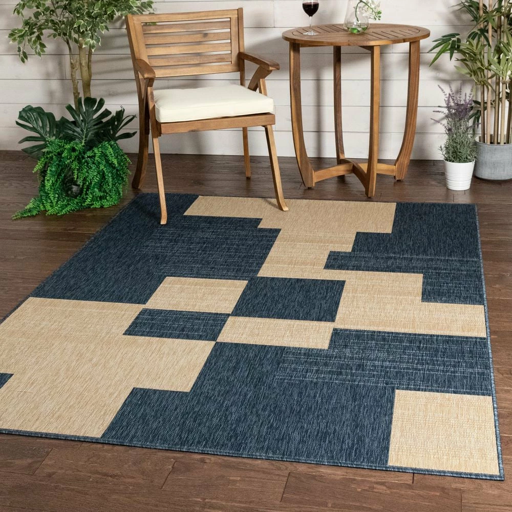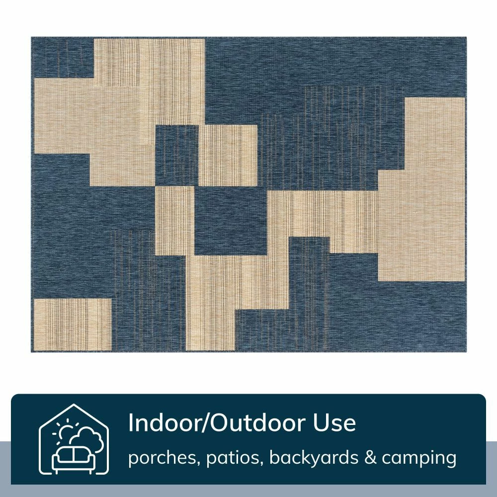 Well Woven Thor Geometric Indoor Outdoor Blue Flatweave Rug