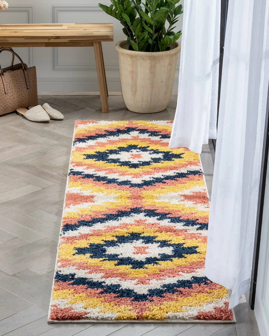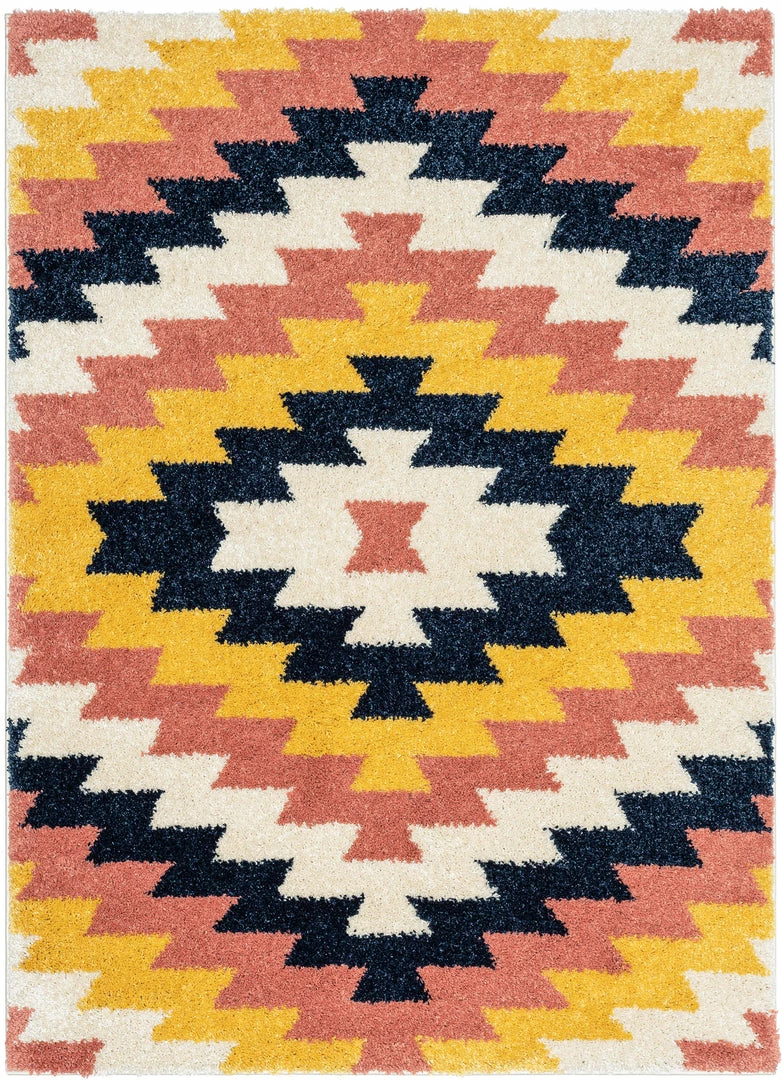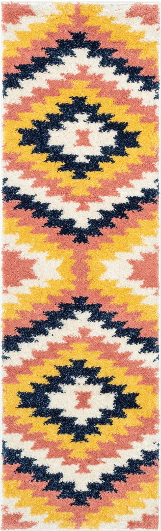 Well Woven Titan Southwestern Tribal Ivory Blue Rainbow Shag Rug Global