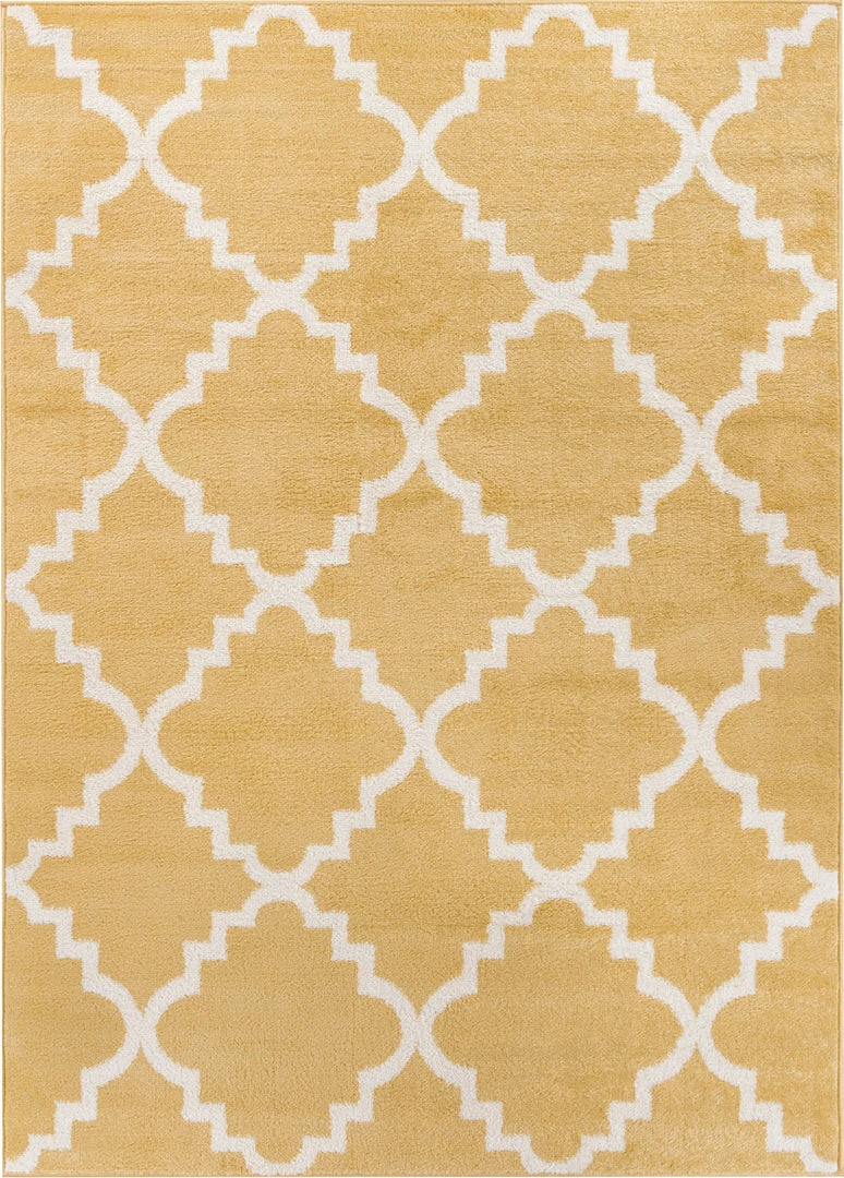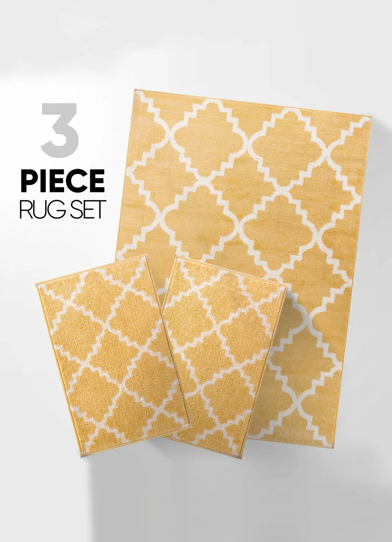 Well Woven Trellis Yellow Modern 3-Piece Set (5′ X 7′ And Bonus 20″ X 31″ Mats)