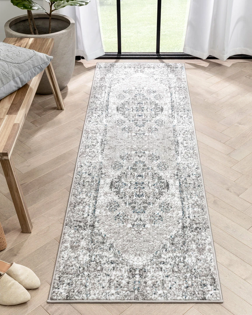 Well Woven Trieste Vintage Floral Medallion Pattern Ivory Grey Rug Global