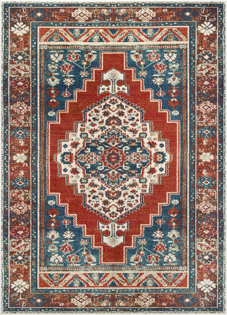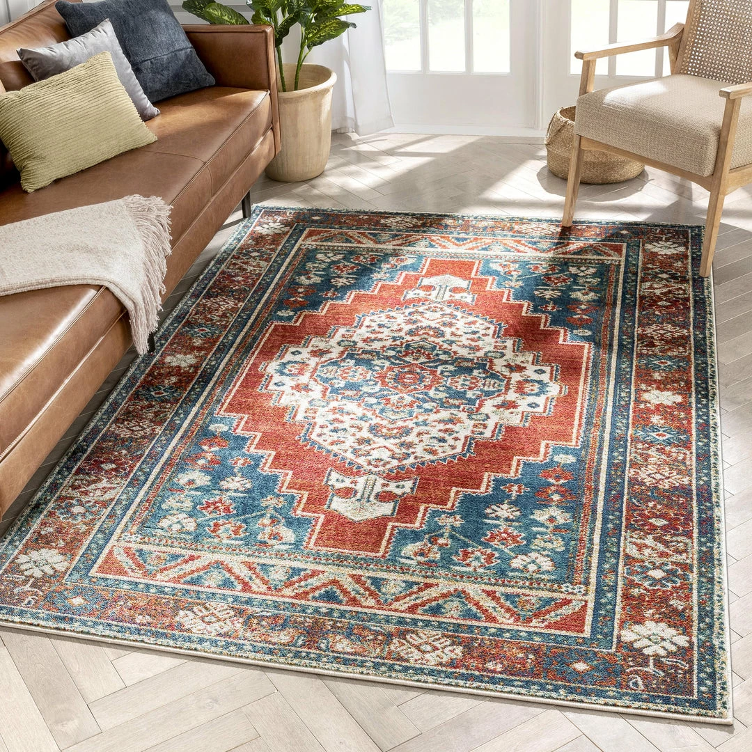 Well Woven Ucon Southwestern Medallion Pattern Blue Red Distressed Rug Global