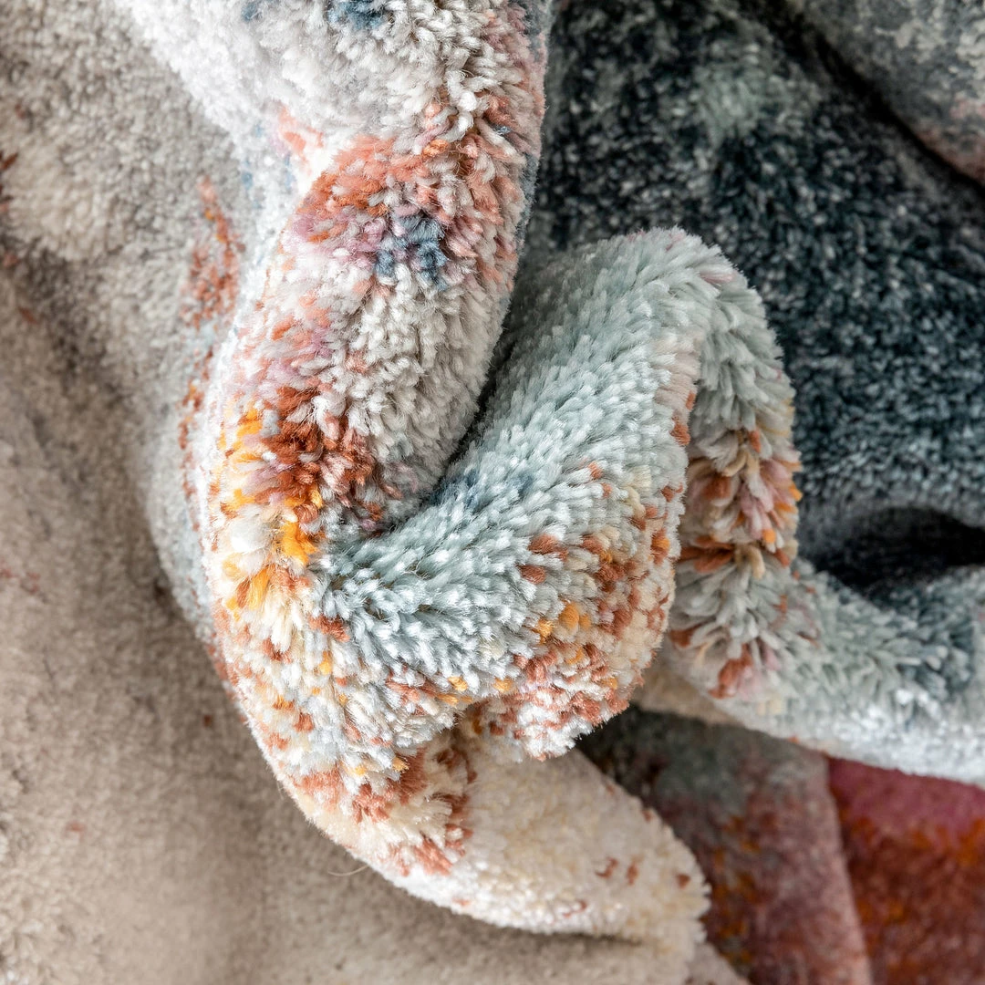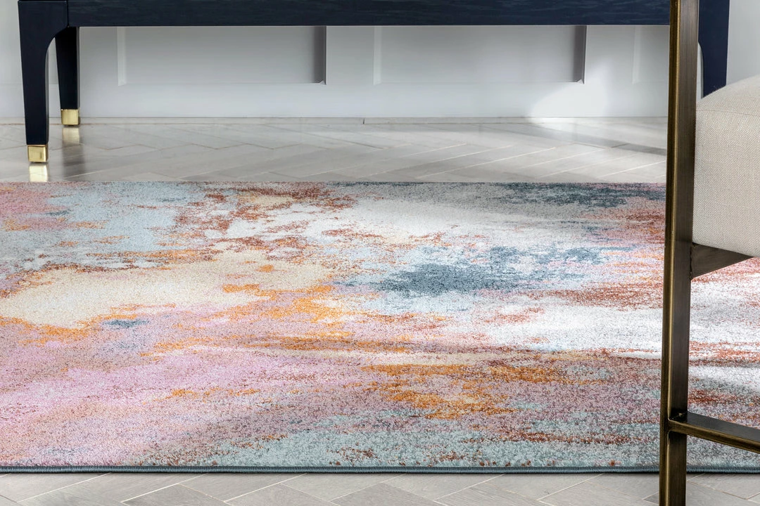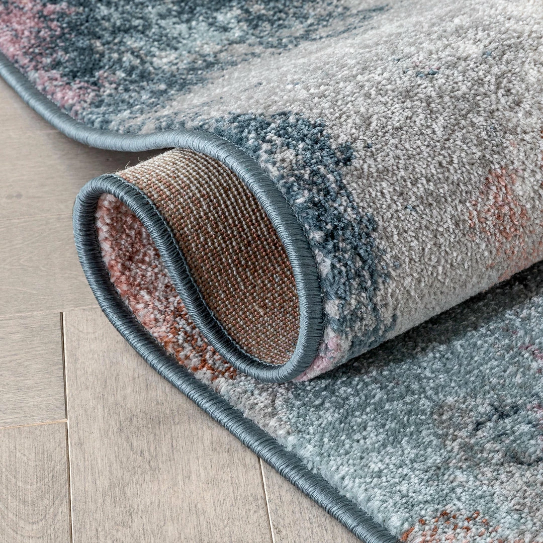 Well Woven Vintage Petal Modern Abstract Paintsplash Distressed Blue Pink Rug