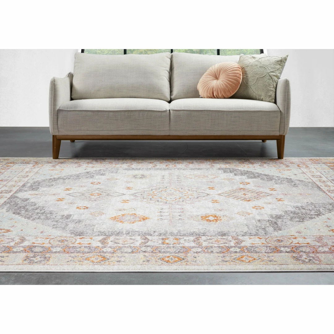 Virden Grey is a unique but approachable vintage style woven in warm, natural colors. Designed with family in mind, its plush yarn is stain resistant, easy to clean and practically shed free.