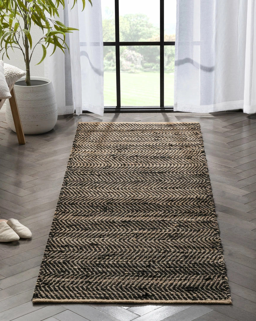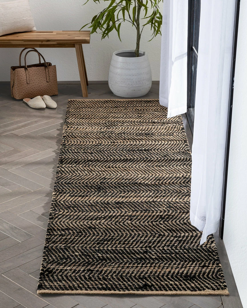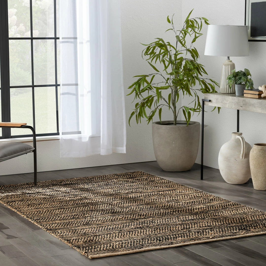 Well Woven Willow Jute Chevron Natural Black Hand-Woven Chunky-Textured Rug