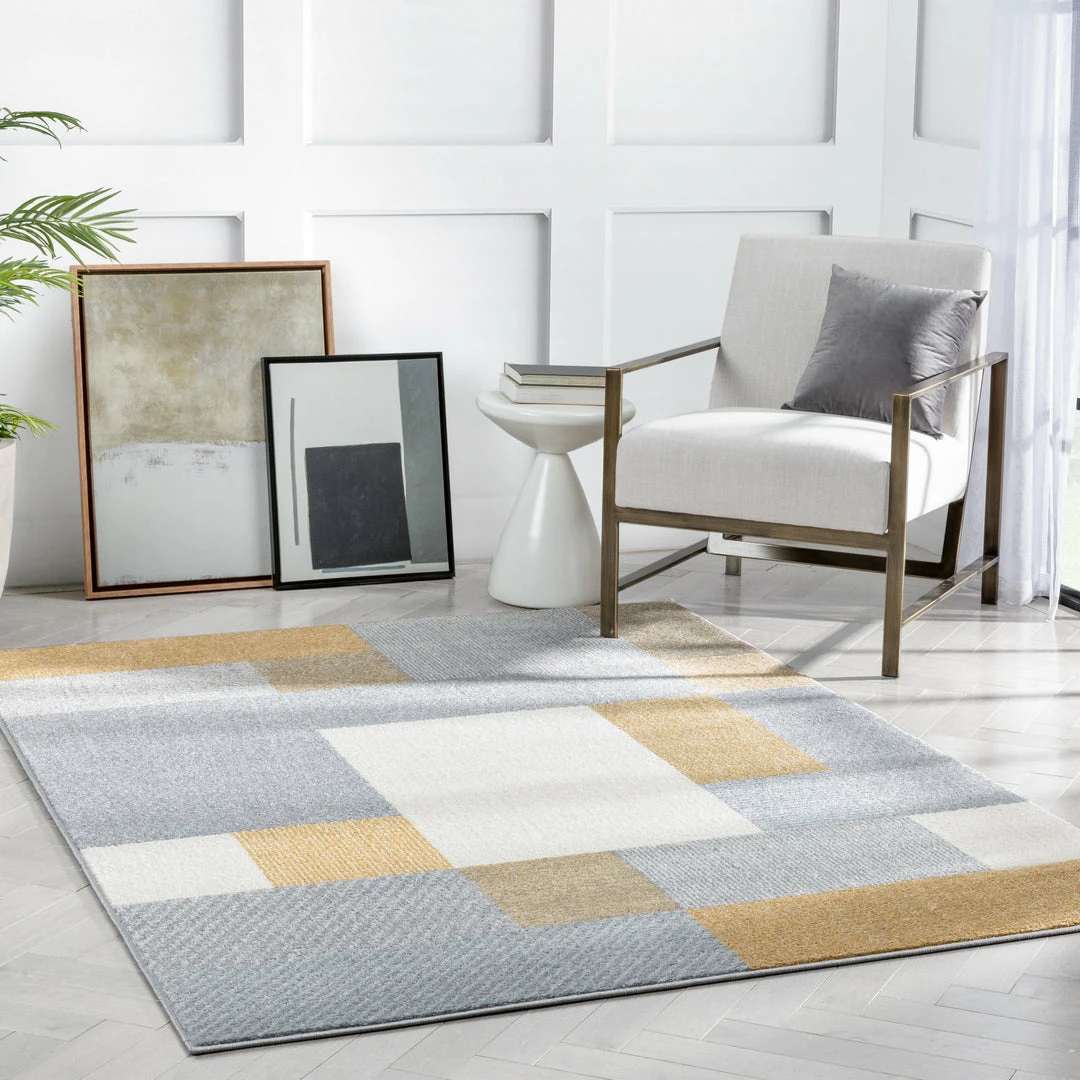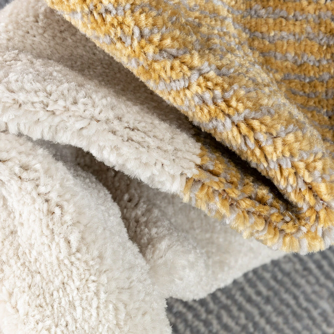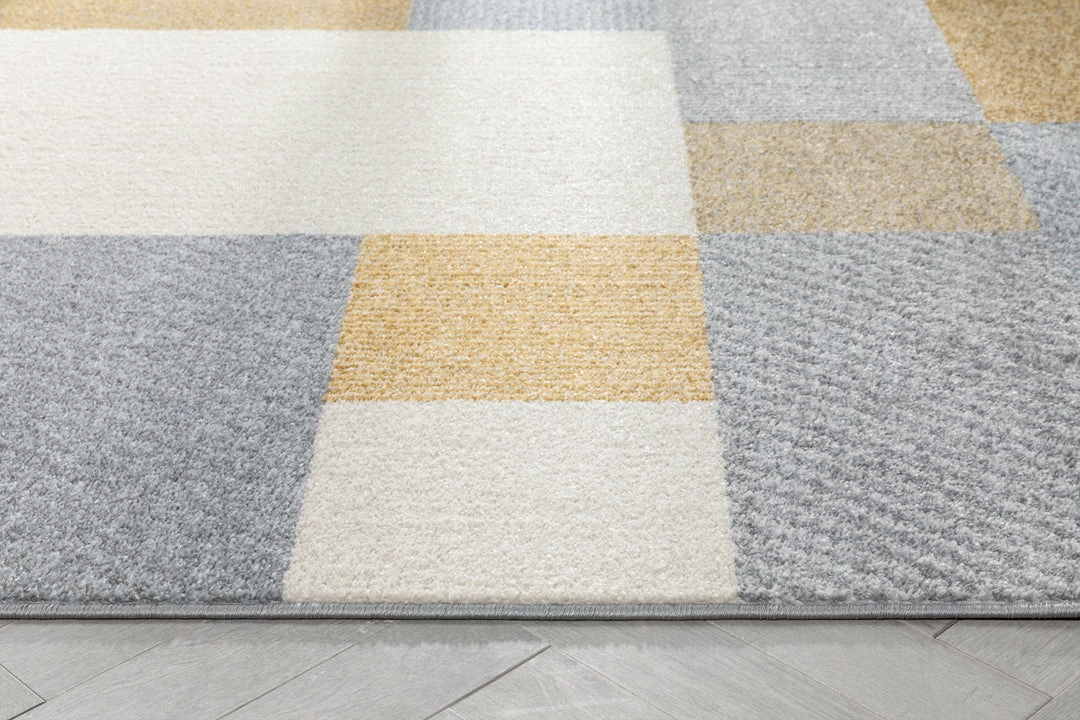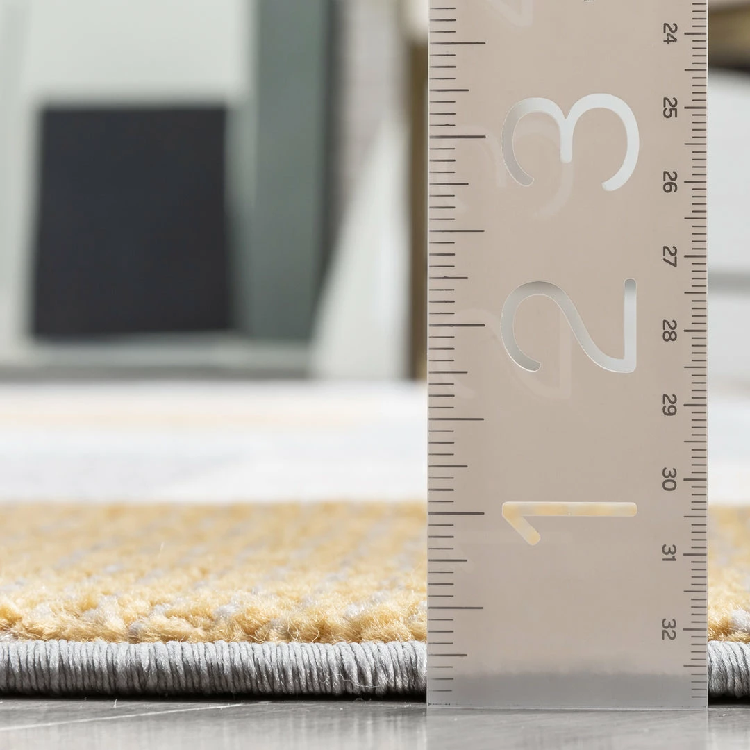 Sydney is a bright and trendy collection with both modern geometric and updated traditional patterns. Soft, warm, neutral tones are accented with bright, cool, blues and warm reds and yellows. Faded designs add that extra something and a plush 0.5 pile of air twist frieze polypropylene gives an exceptionally textured look. This yarn is soft, stain resistant, and does not shed or fade.