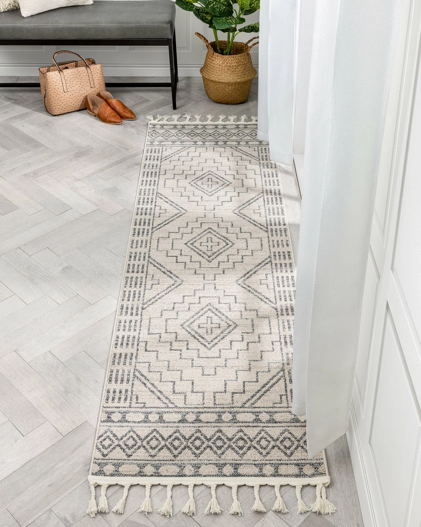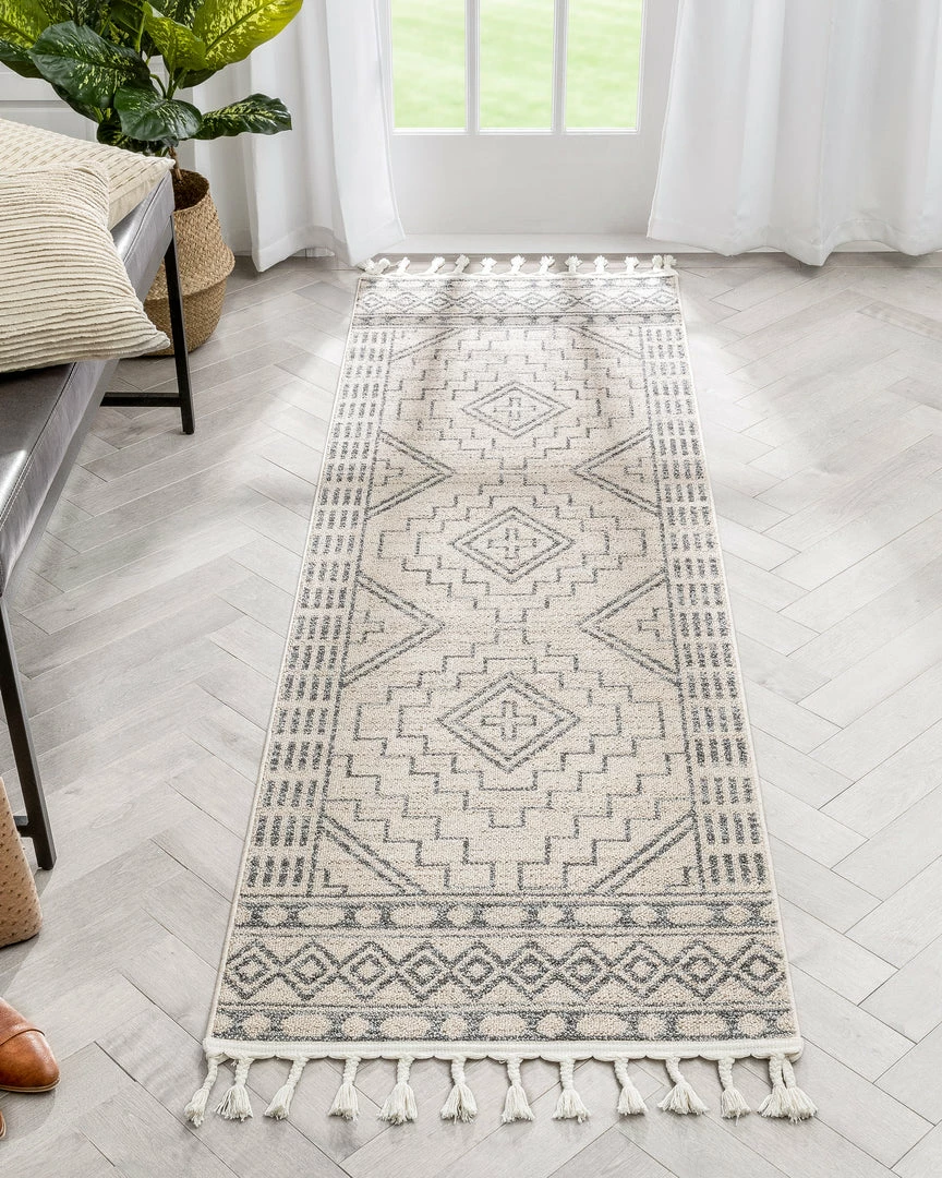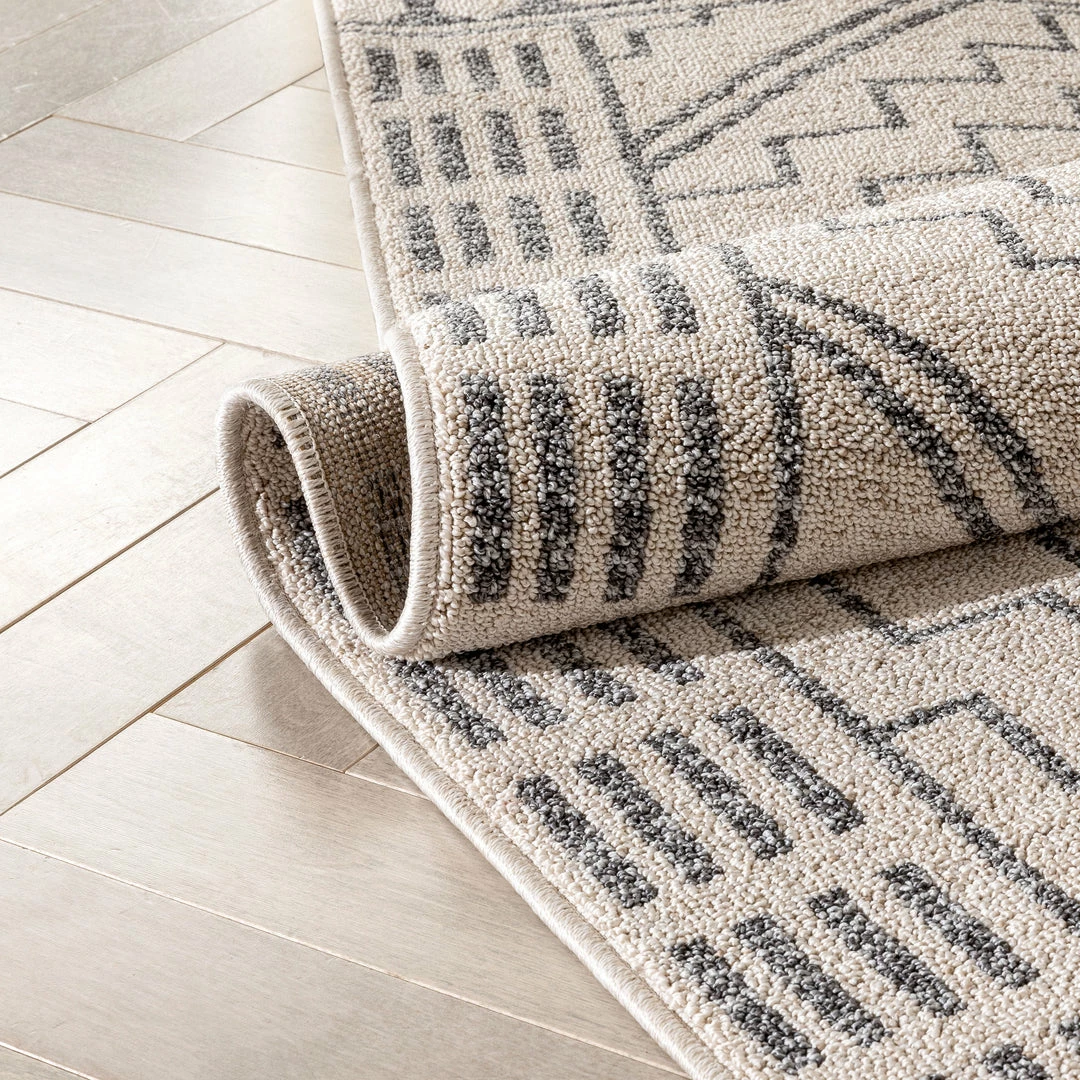 Well Woven Zafer Tribal Geometric Pattern Ivory Kilim-Style Rug